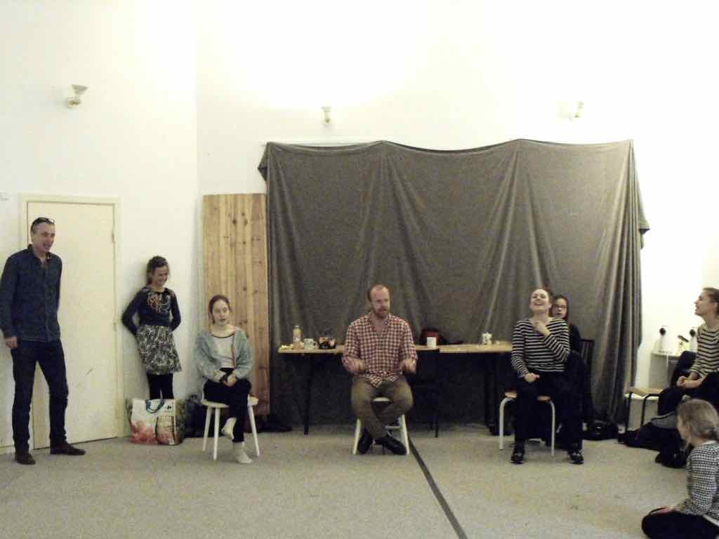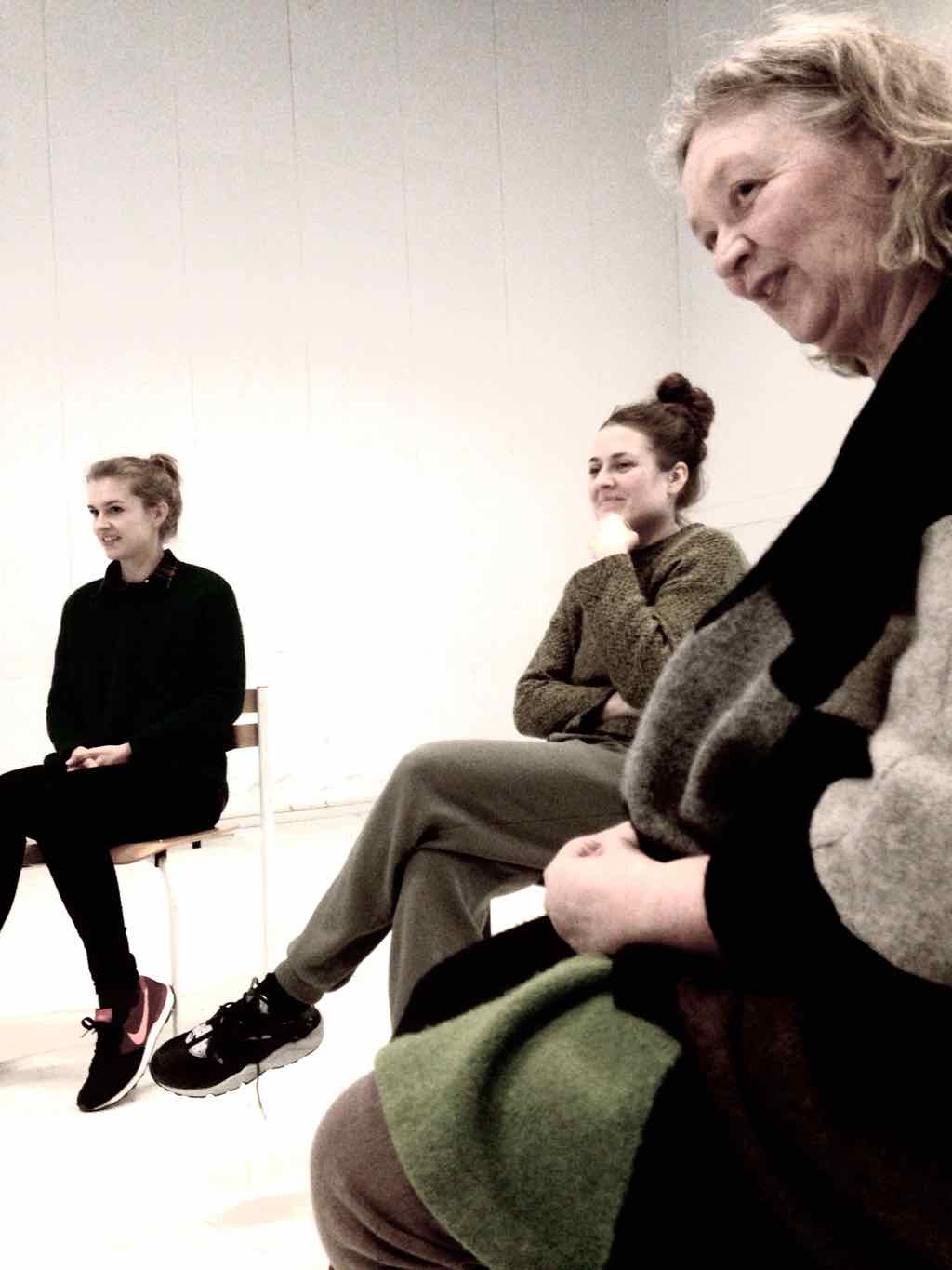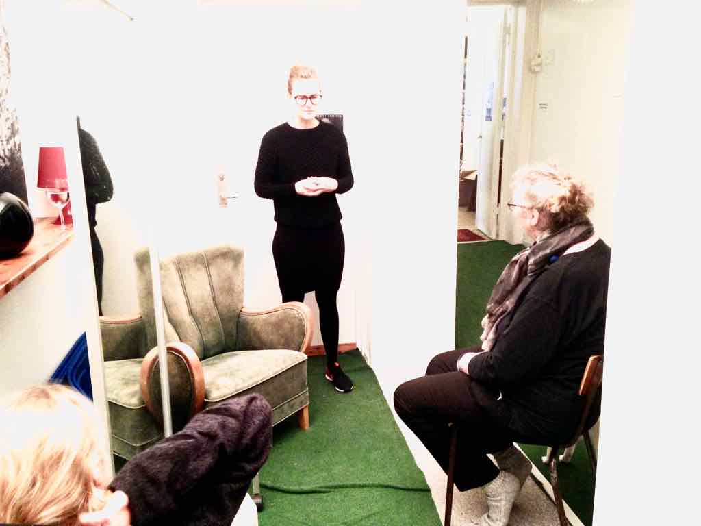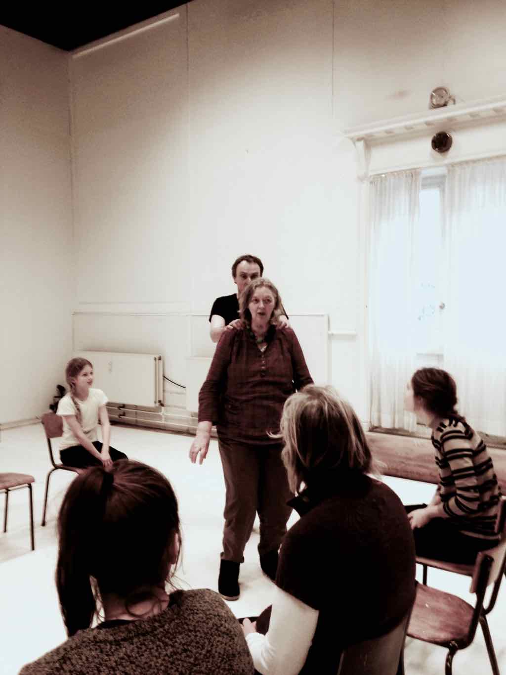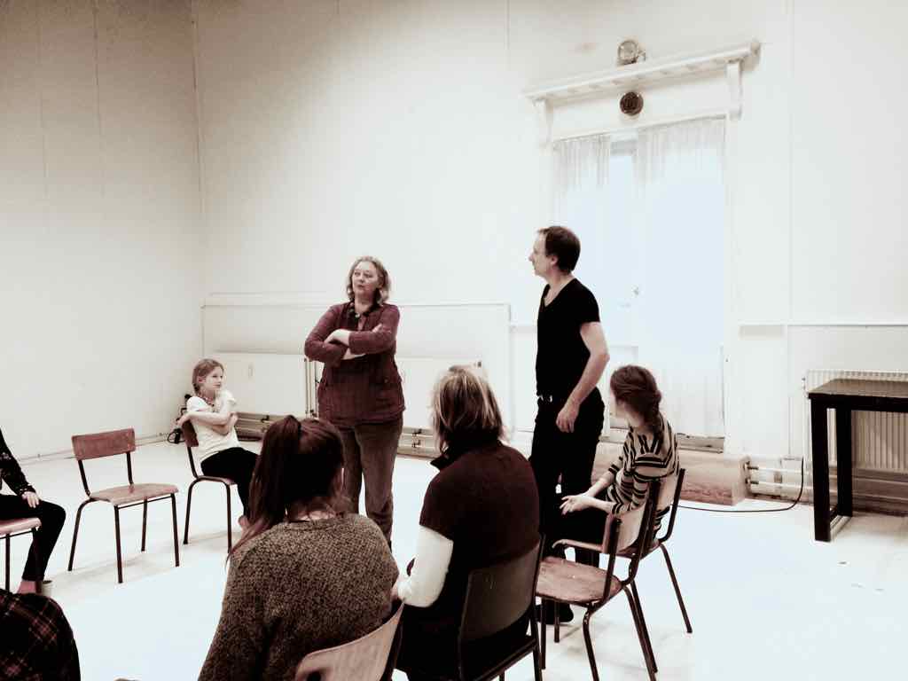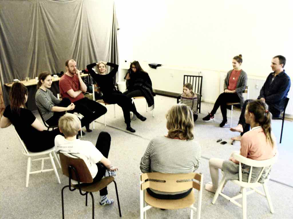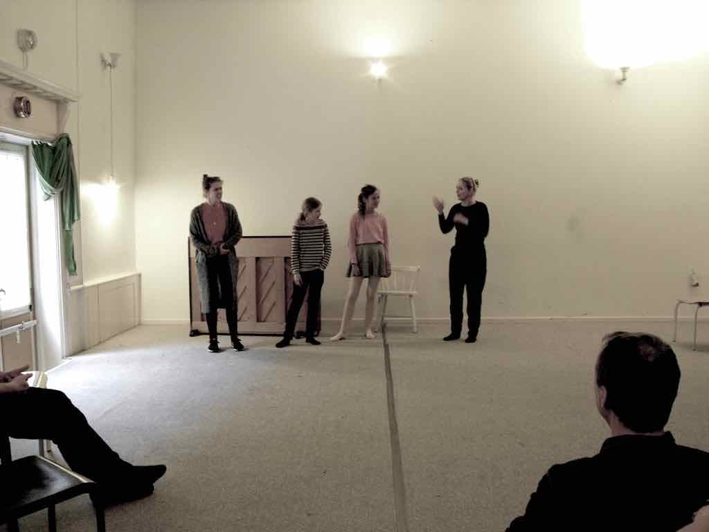 Der er visning i den store gruppe på de fire forskellige fortællinger, som har vidt forskellige udtryk. Processen har været legende, alvorlig og nydelsesfuld for alle deltagerne.