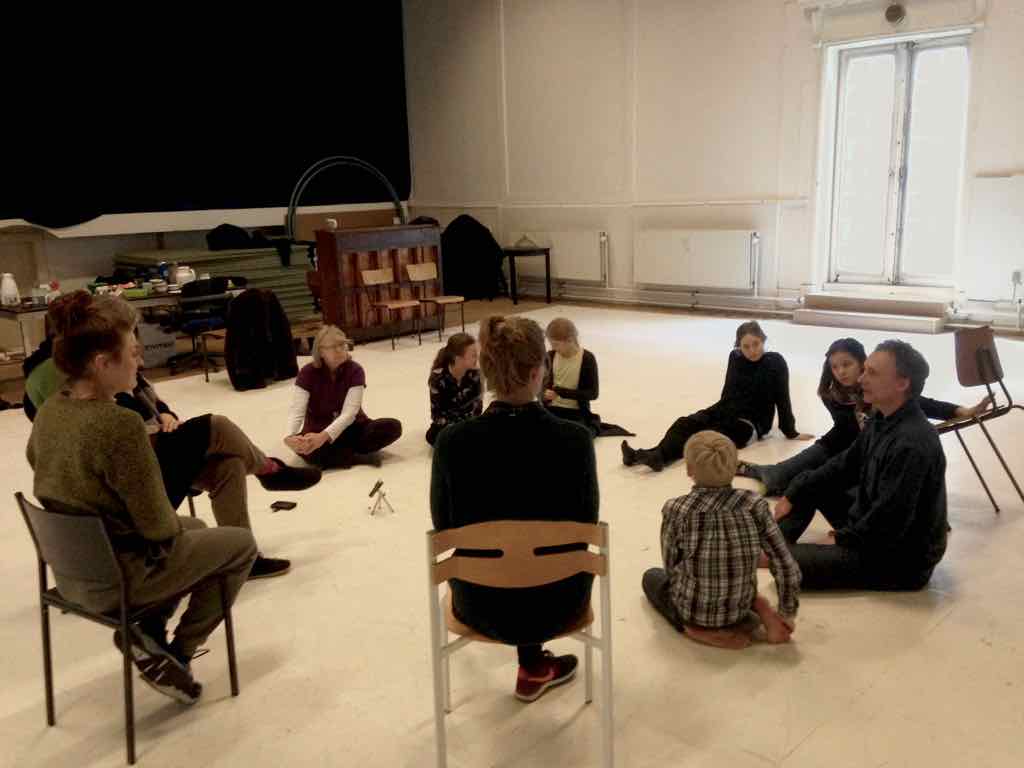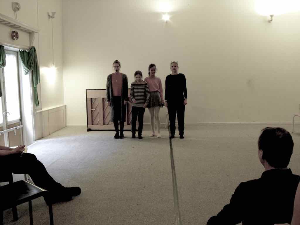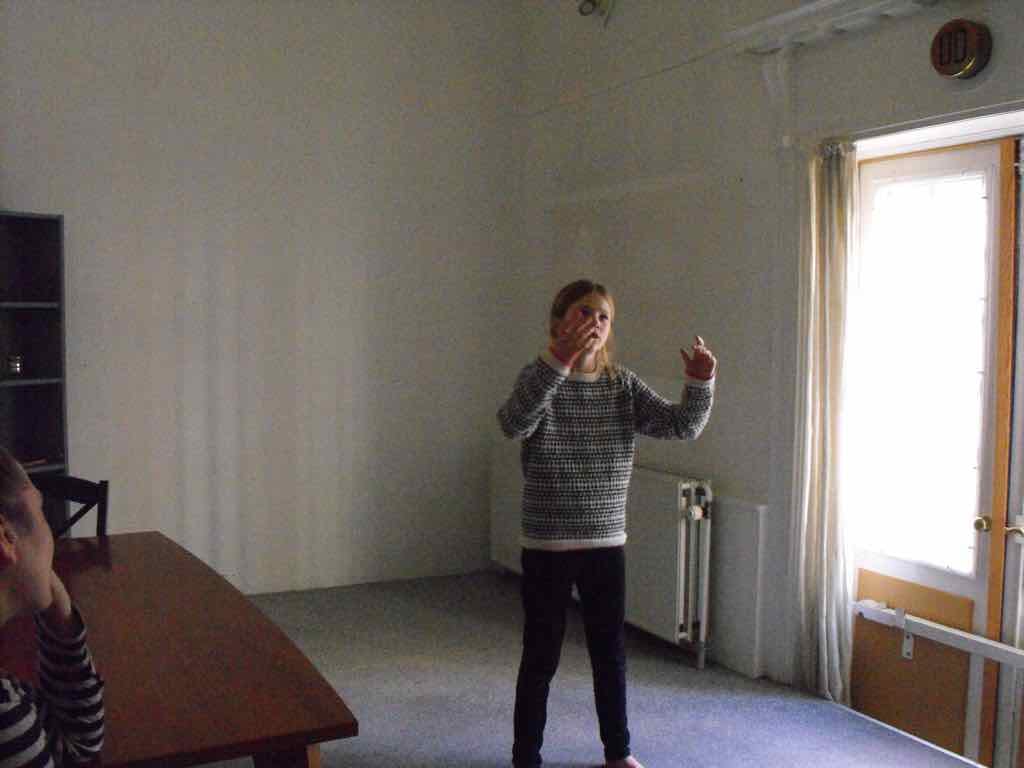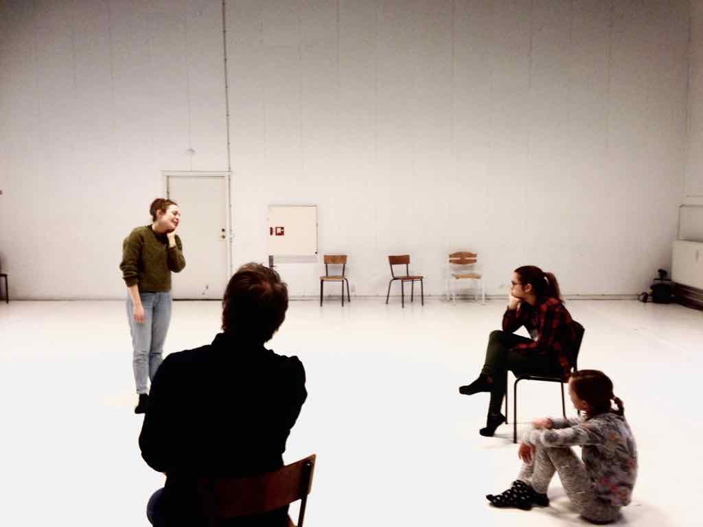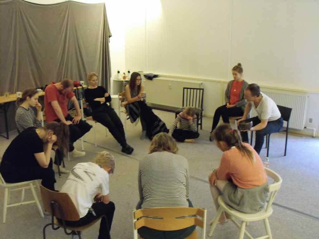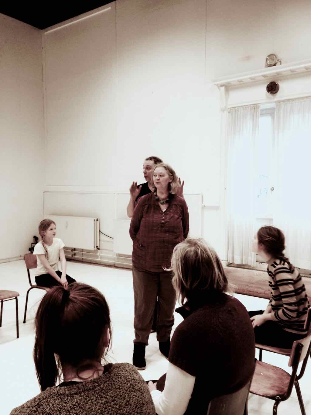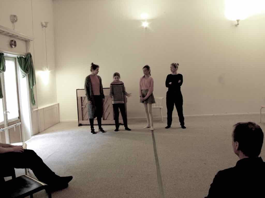 Der er visning i den store gruppe på de fire forskellige fortællinger, som har vidt forskellige udtryk. Processen har været legende, alvorlig og nydelsesfuld for alle deltagerne.