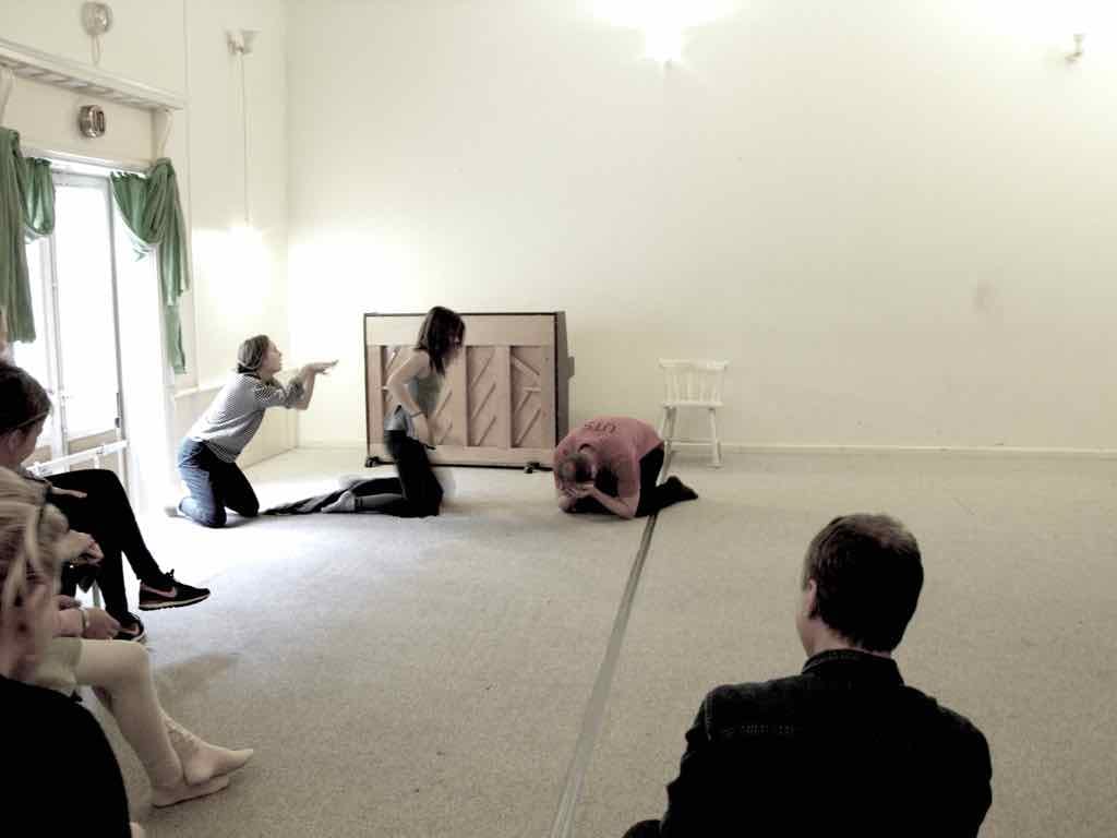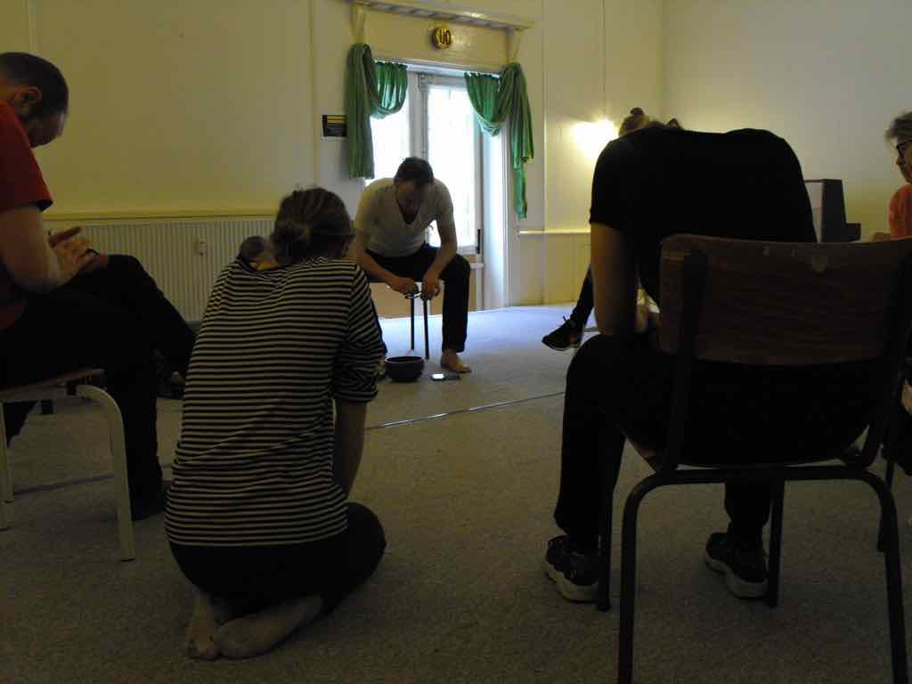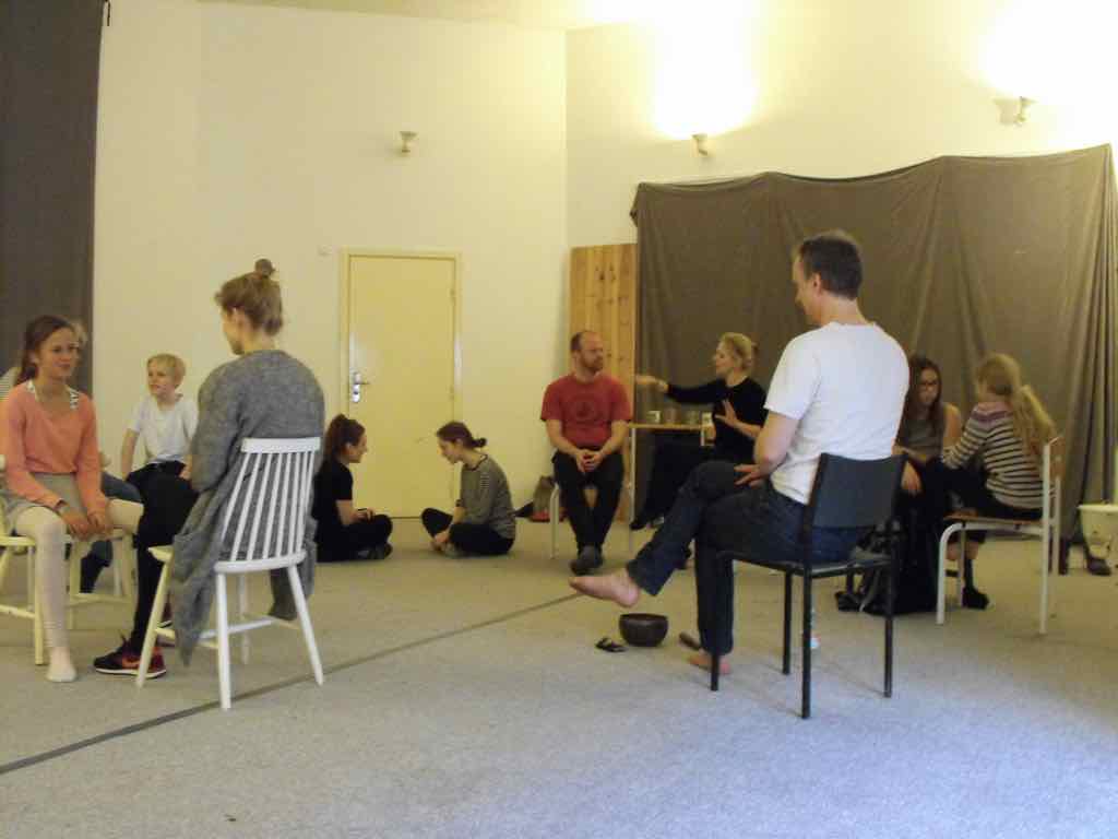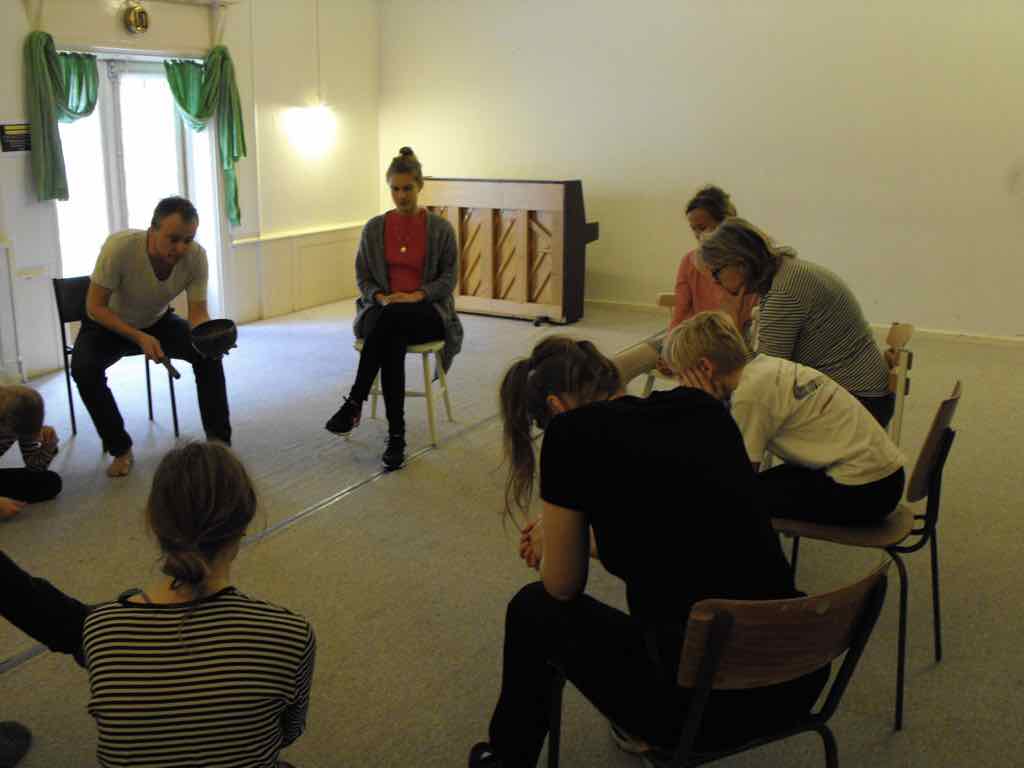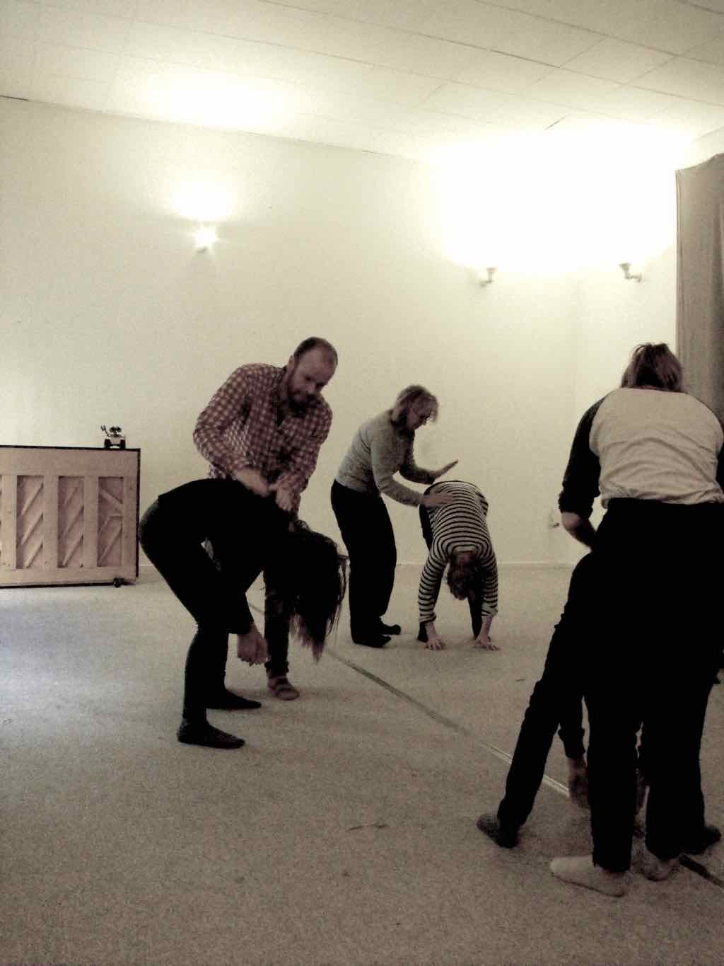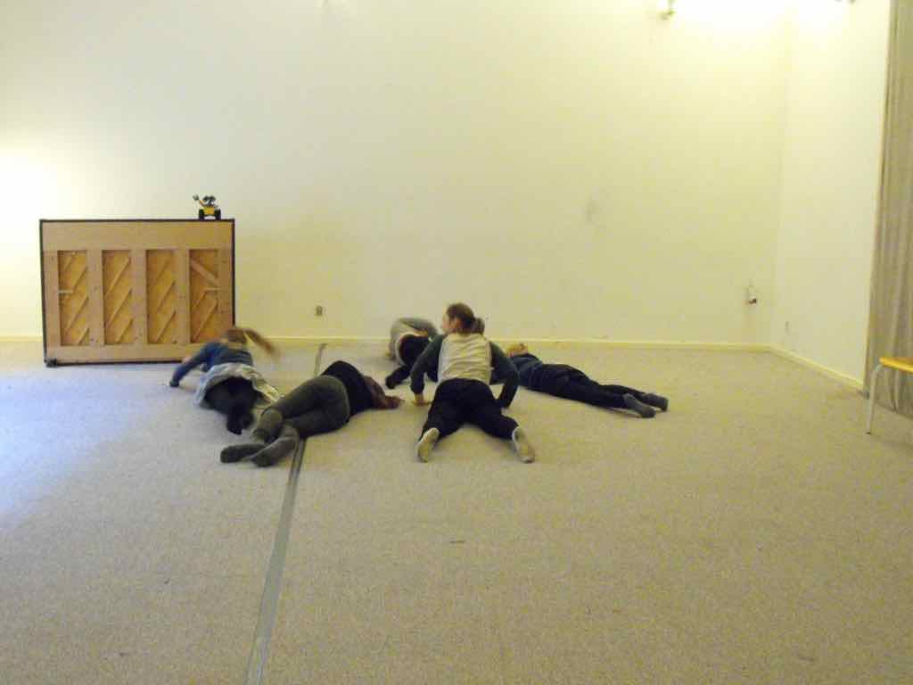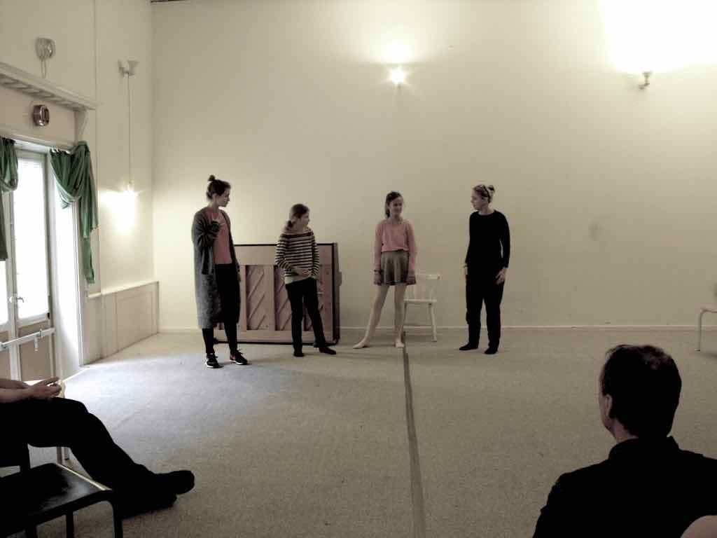 Der er visning i den store gruppe på de fire forskellige fortællinger, som har vidt forskellige udtryk. Processen har været legende, alvorlig og nydelsesfuld for alle deltagerne.