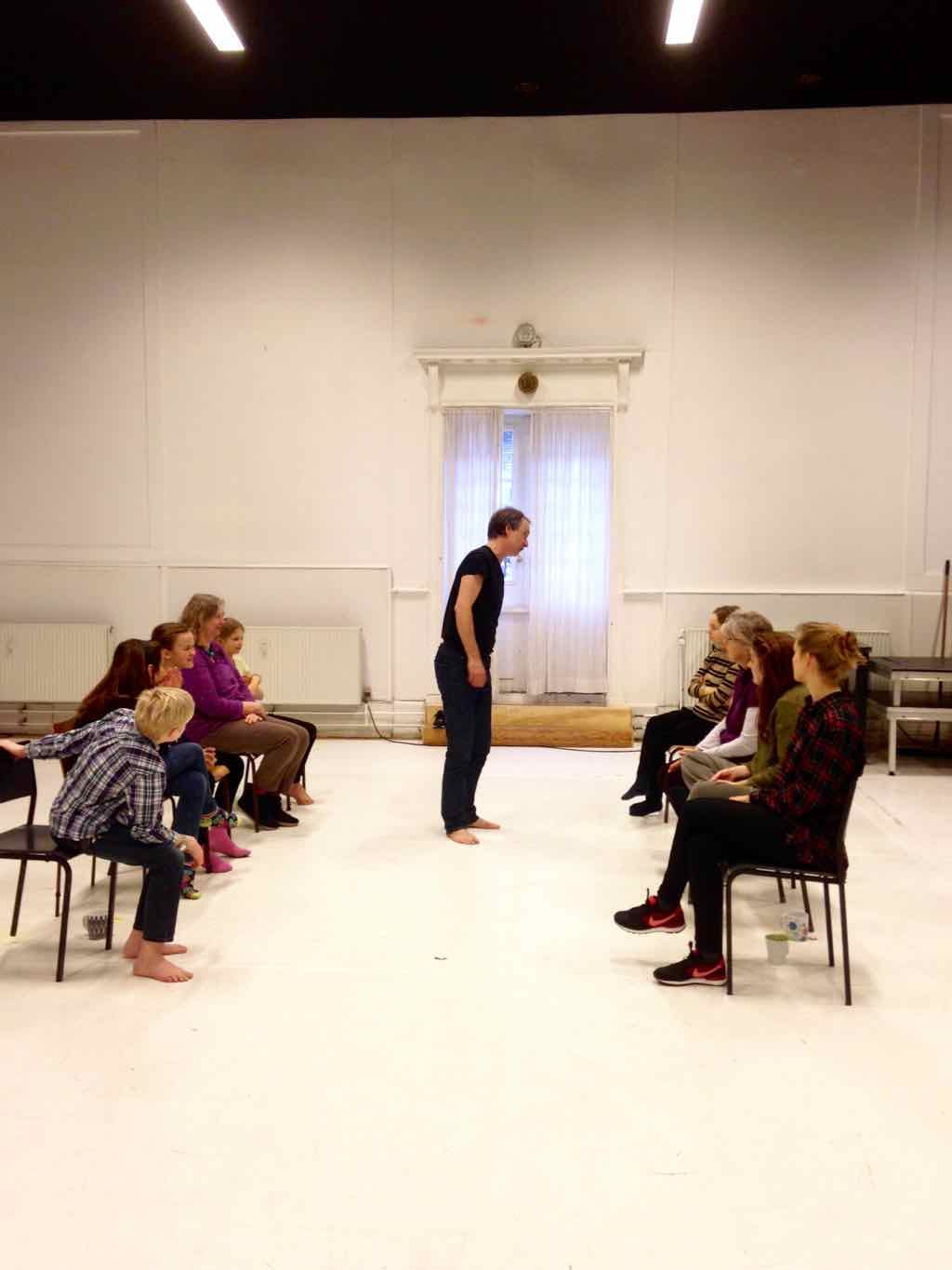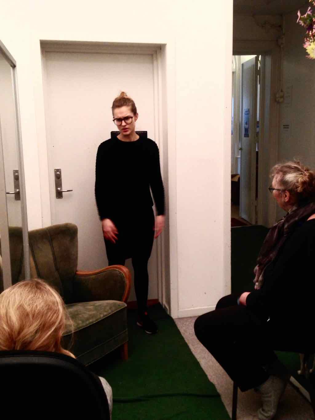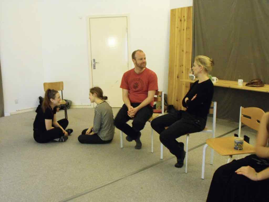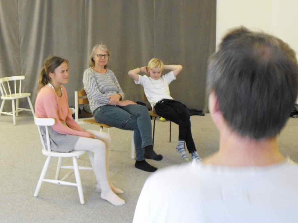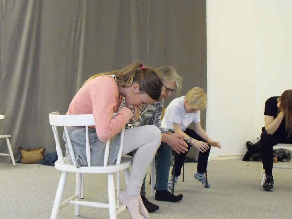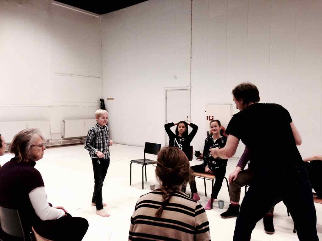 Der er visning i den store gruppe på de fire forskellige fortællinger, som har vidt forskellige udtryk. Processen har været legende, alvorlig og nydelsesfuld for alle deltagerne.