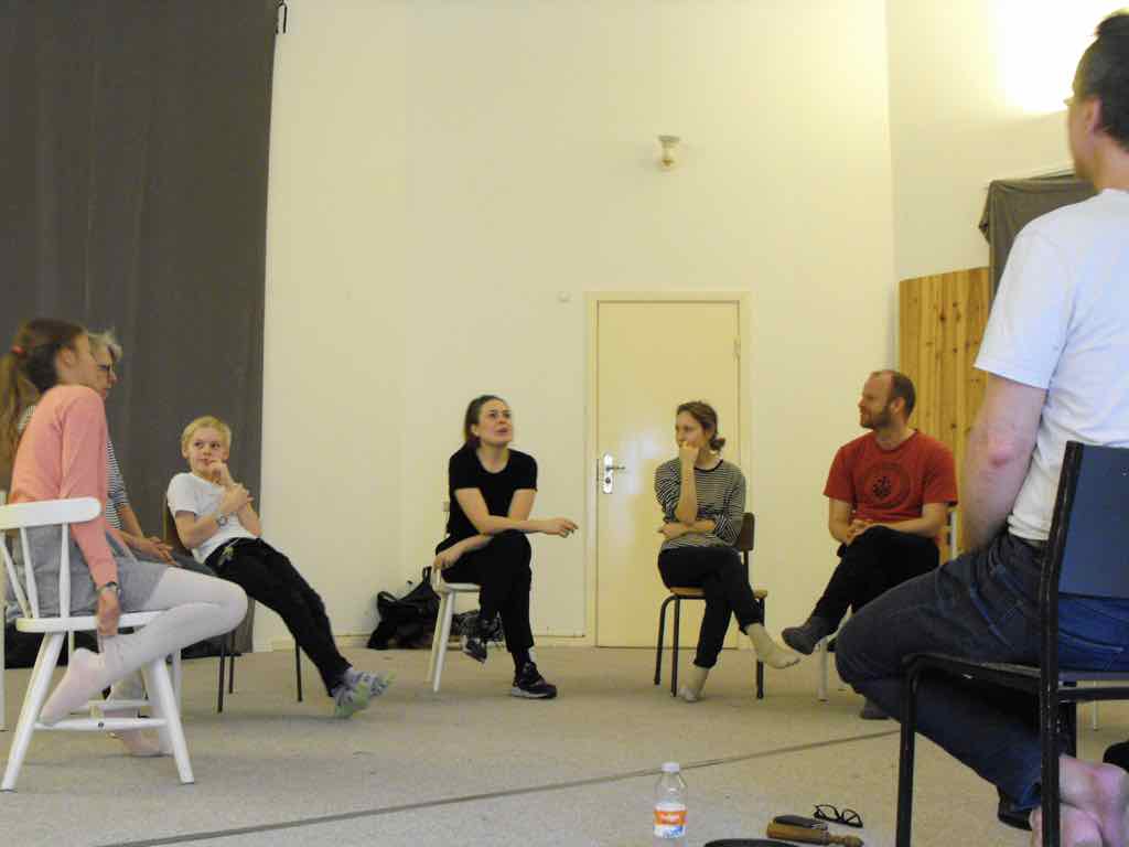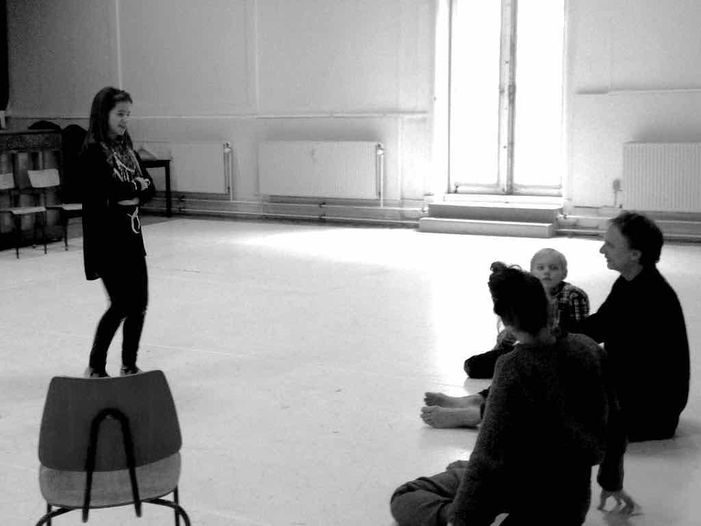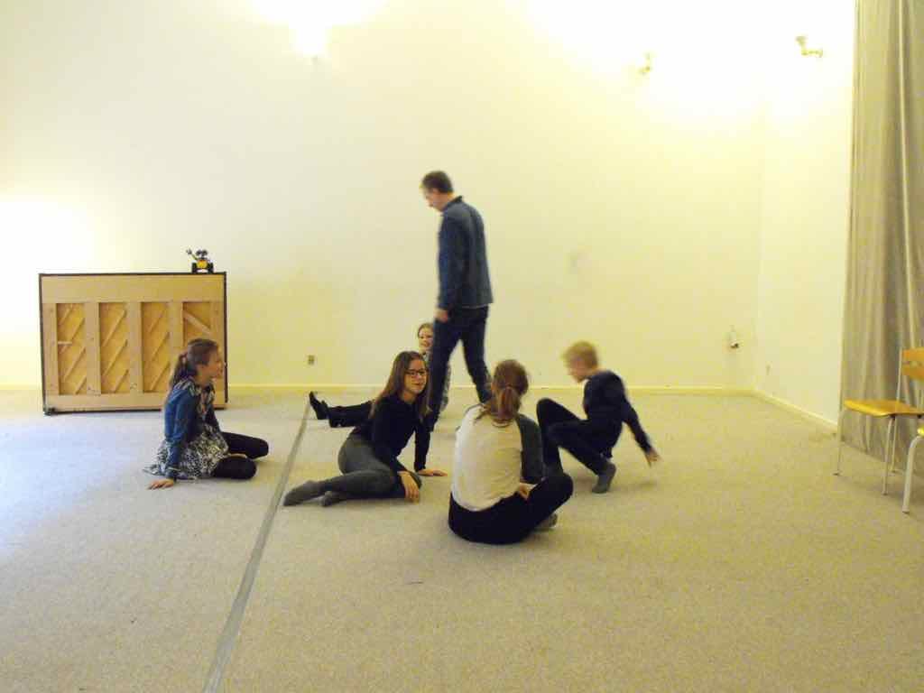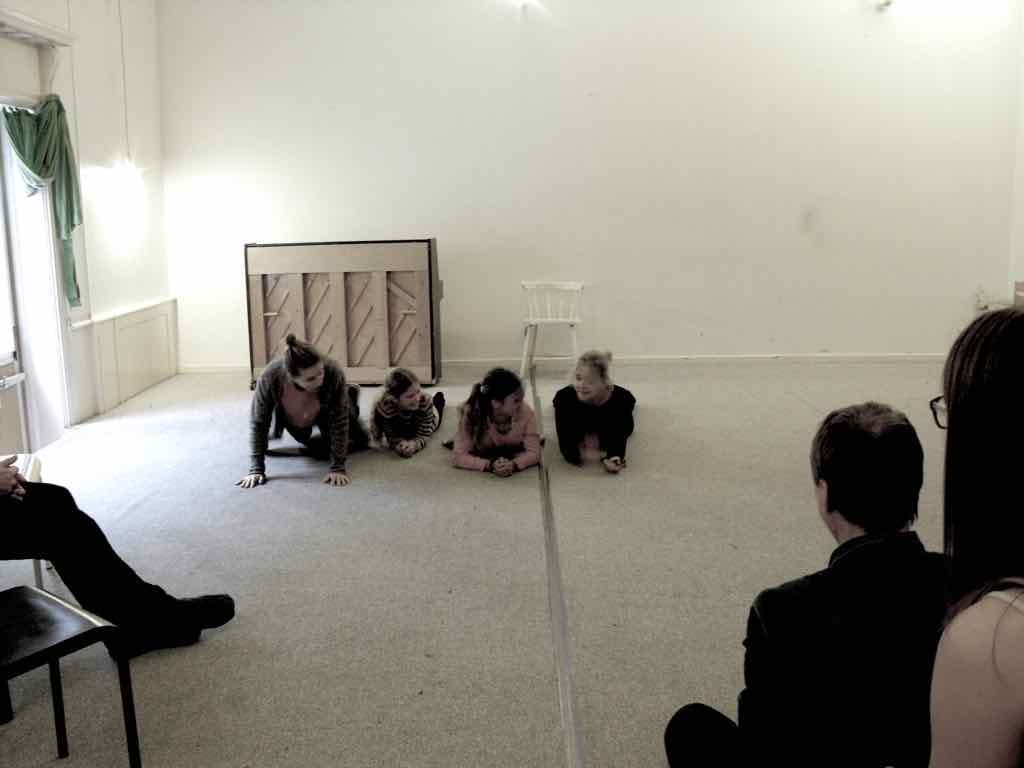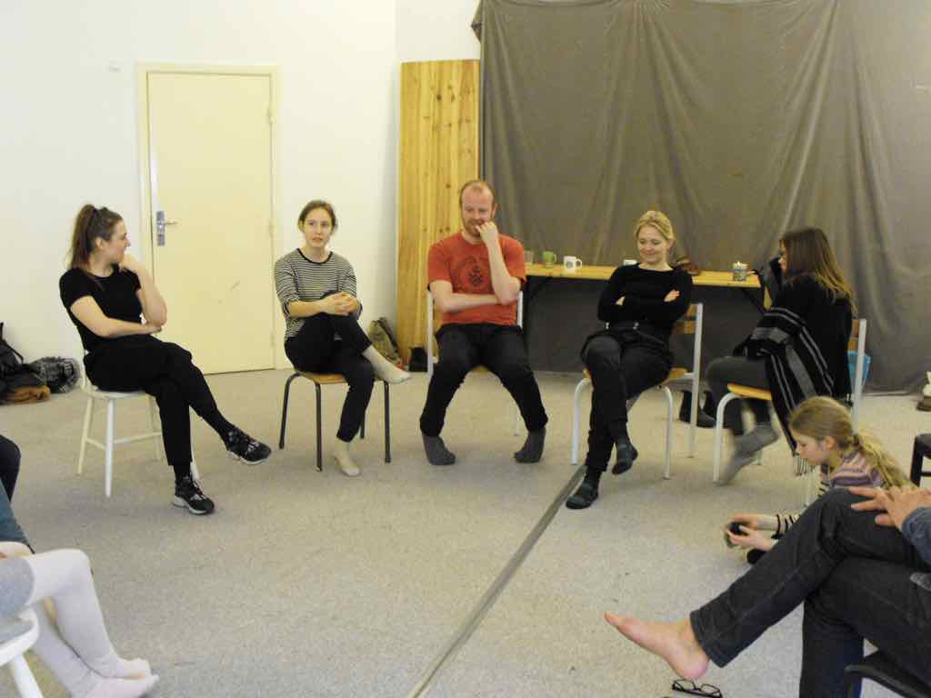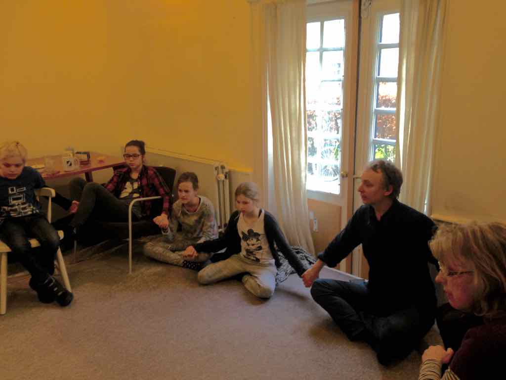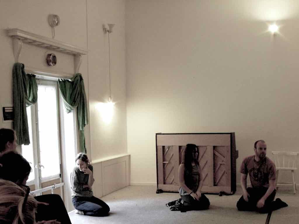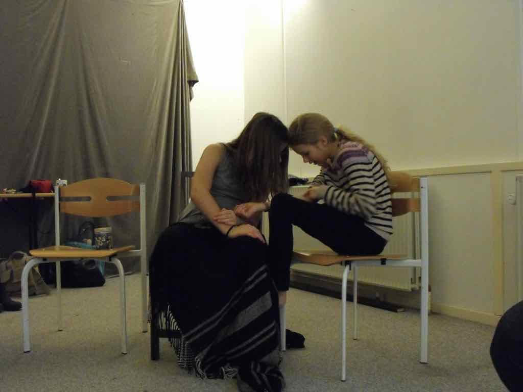 Der er visning i den store gruppe på de fire forskellige fortællinger, som har vidt forskellige udtryk. Processen har været legende, alvorlig og nydelsesfuld for alle deltagerne.