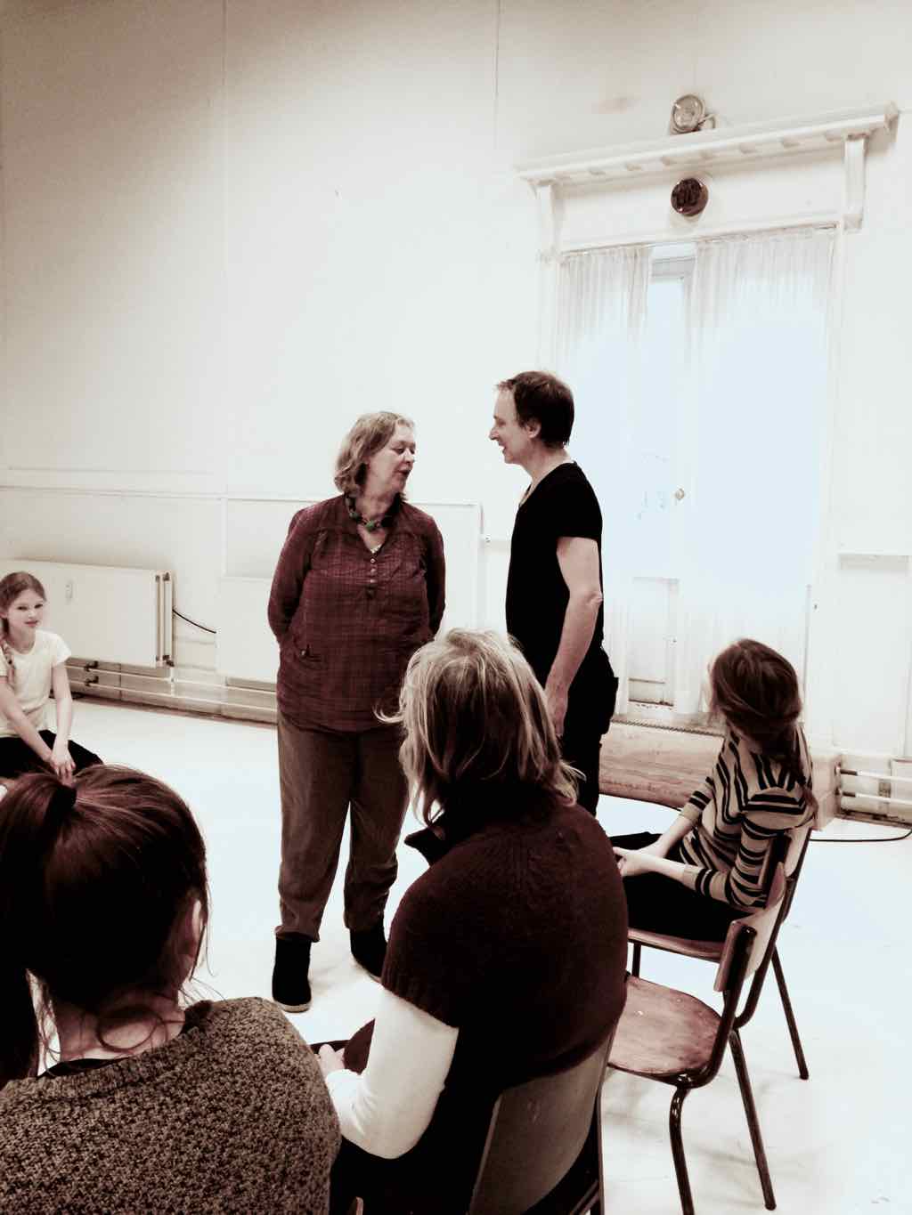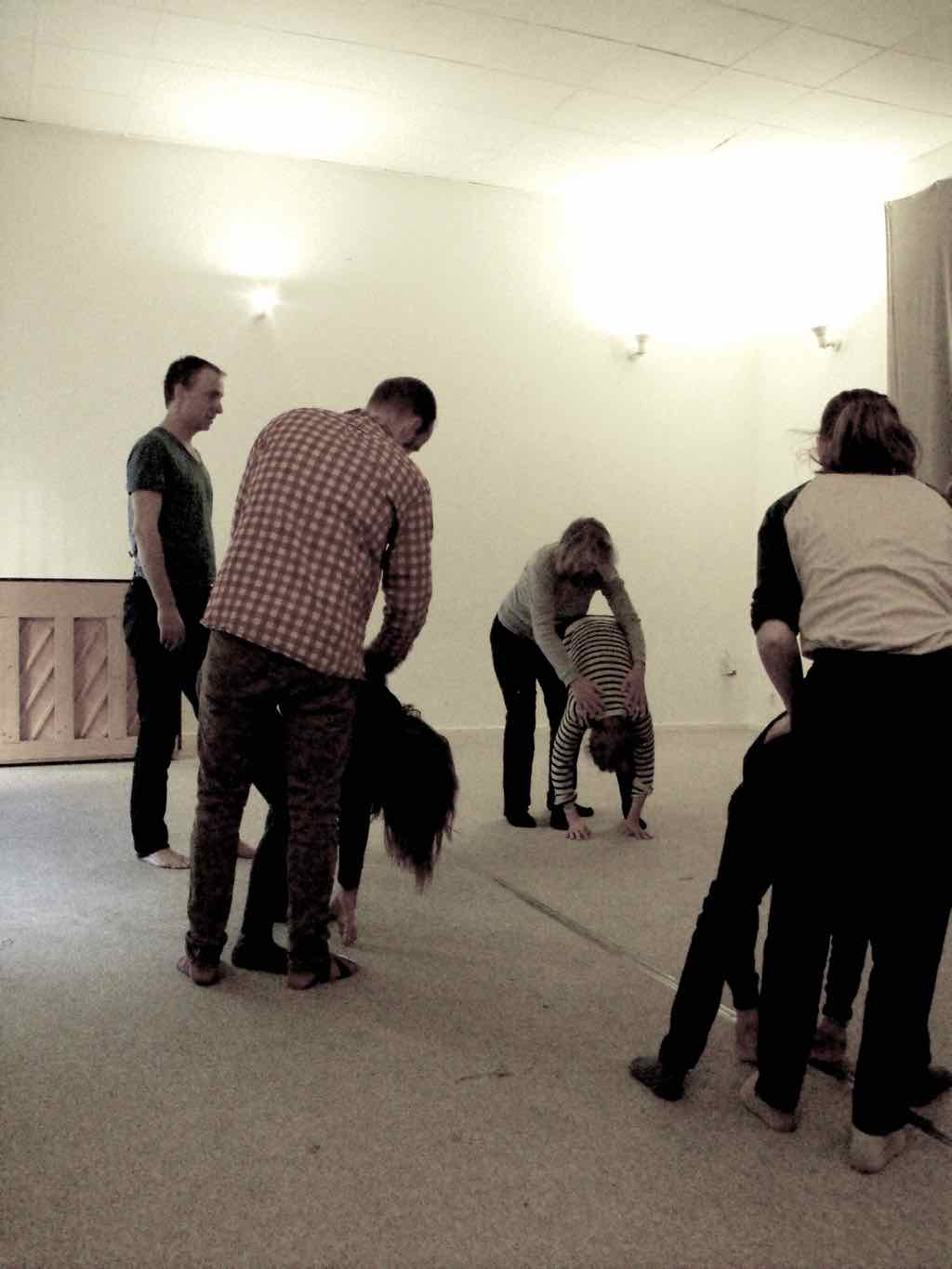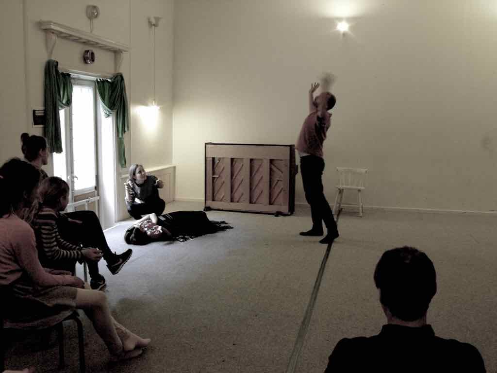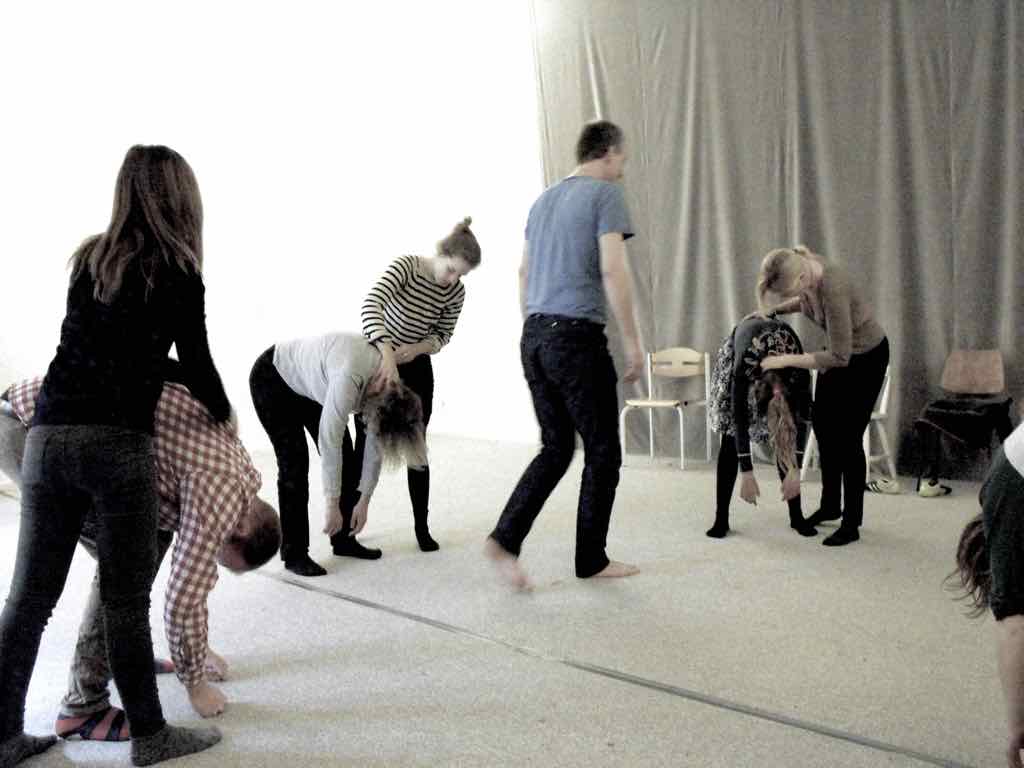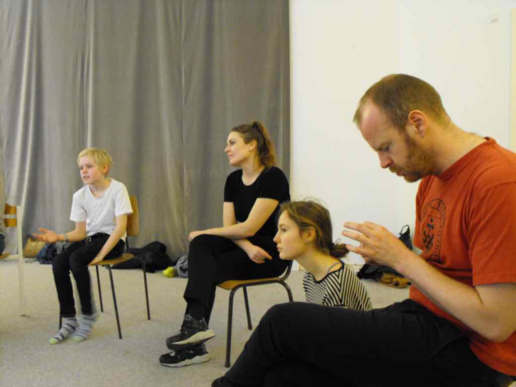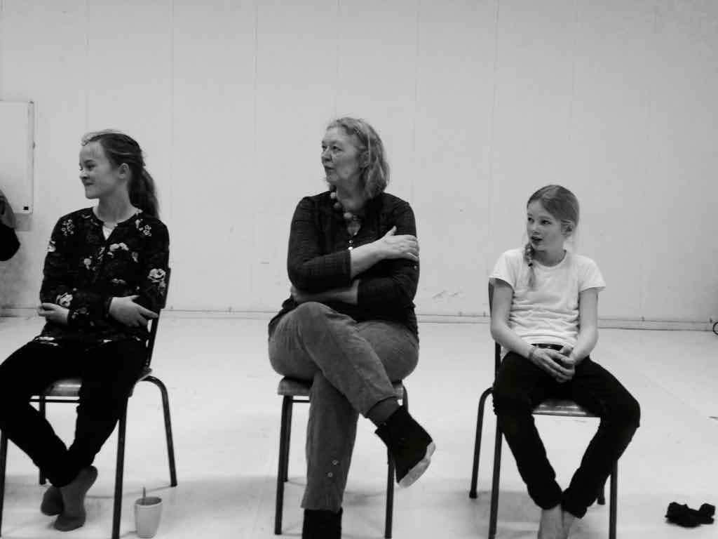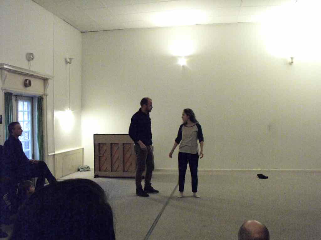 Der er visning i den store gruppe på de fire forskellige fortællinger, som har vidt forskellige udtryk. Processen har været legende, alvorlig og nydelsesfuld for alle deltagerne.