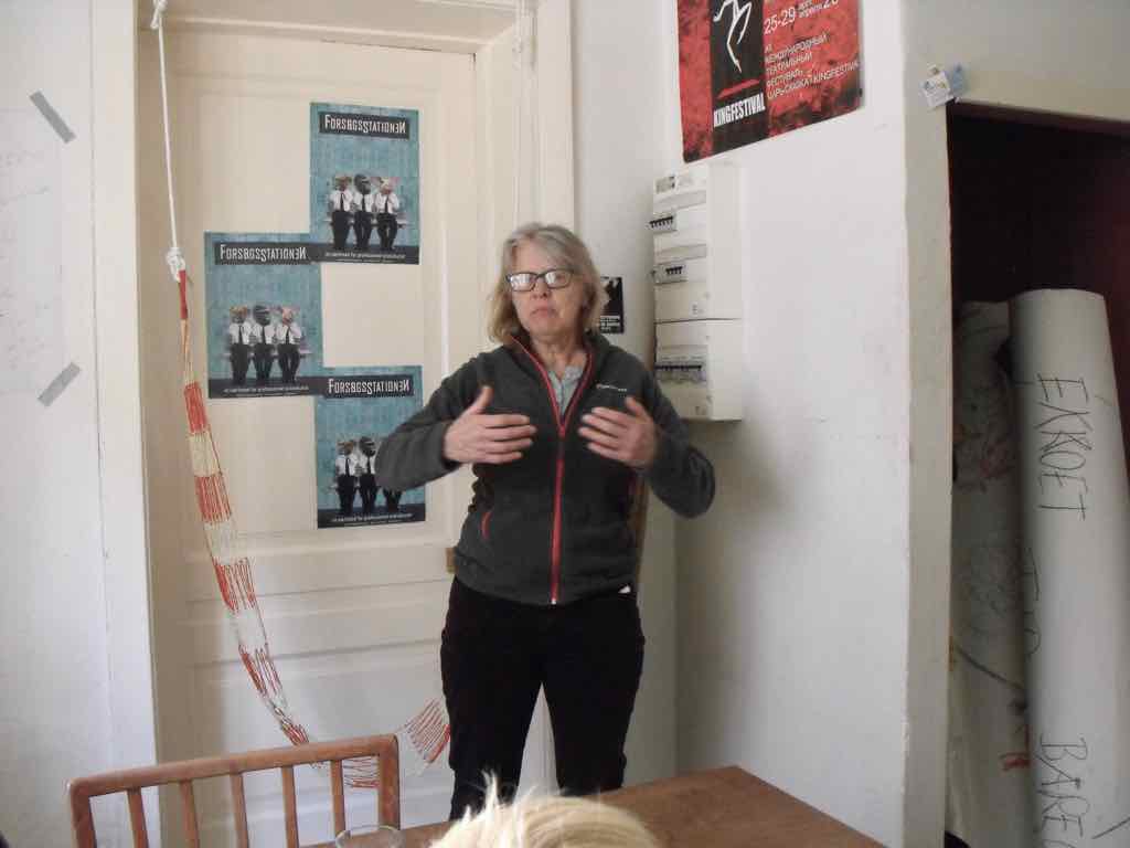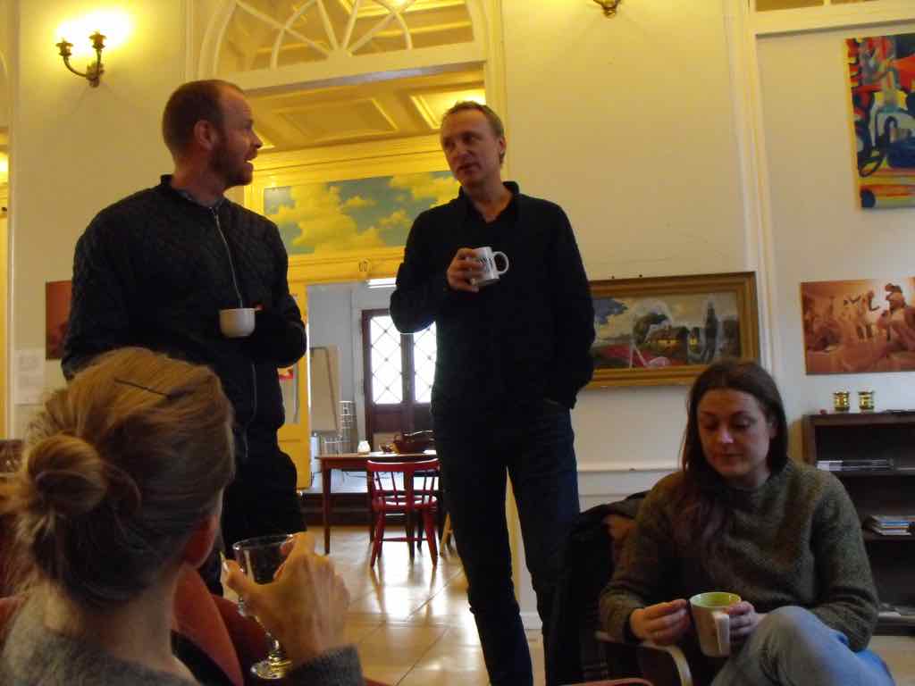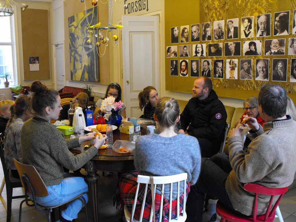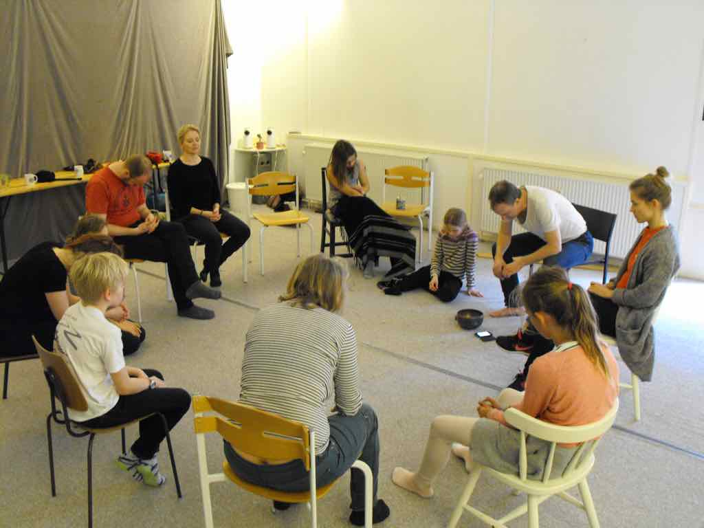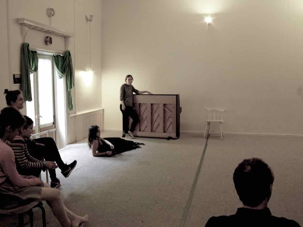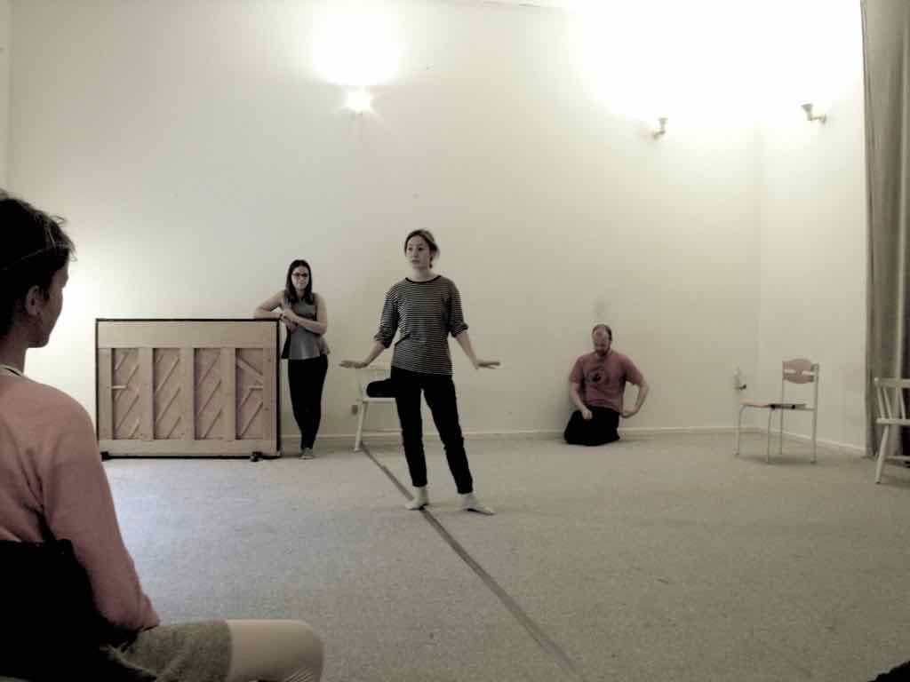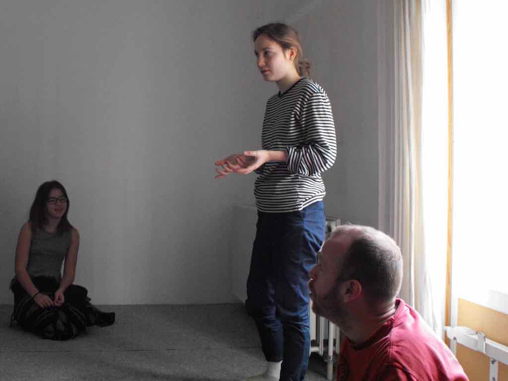Der er visning i den store gruppe på de fire forskellige fortællinger, som har vidt forskellige udtryk. Processen har været legende, alvorlig og nydelsesfuld for alle deltagerne.
