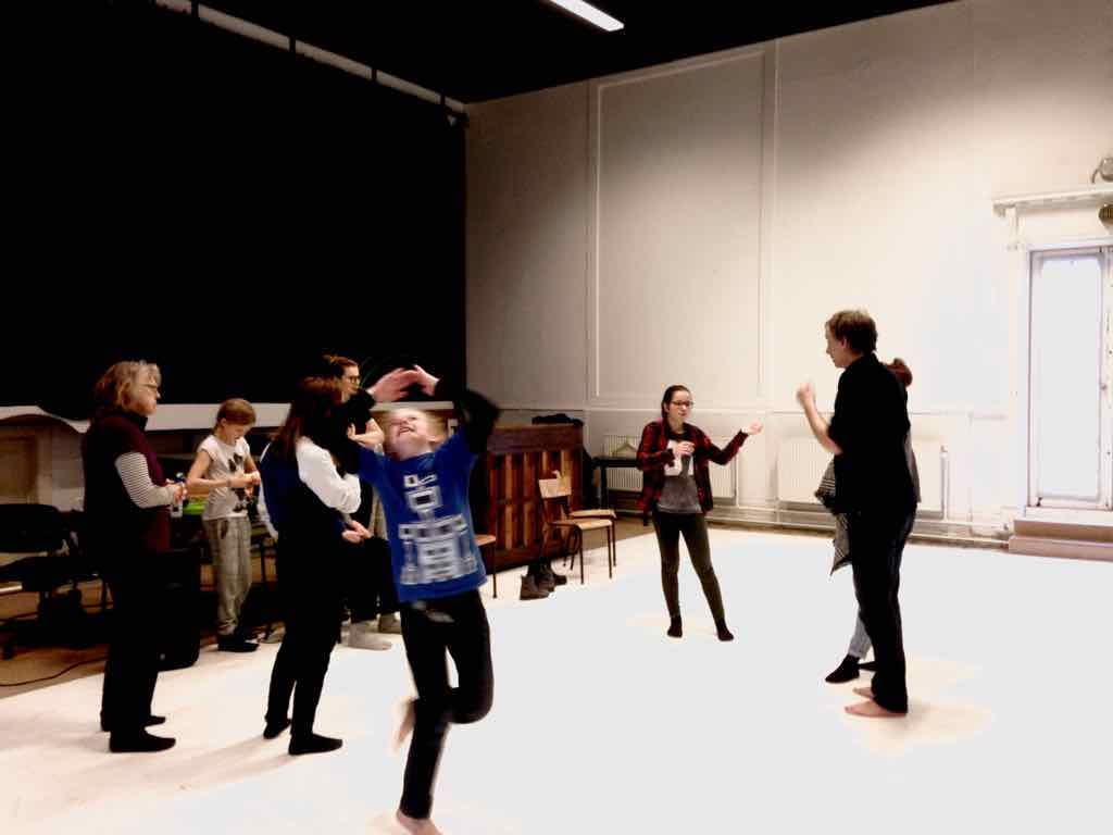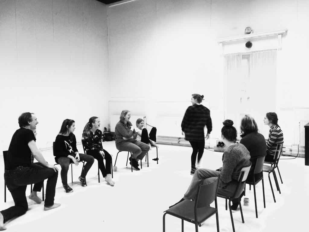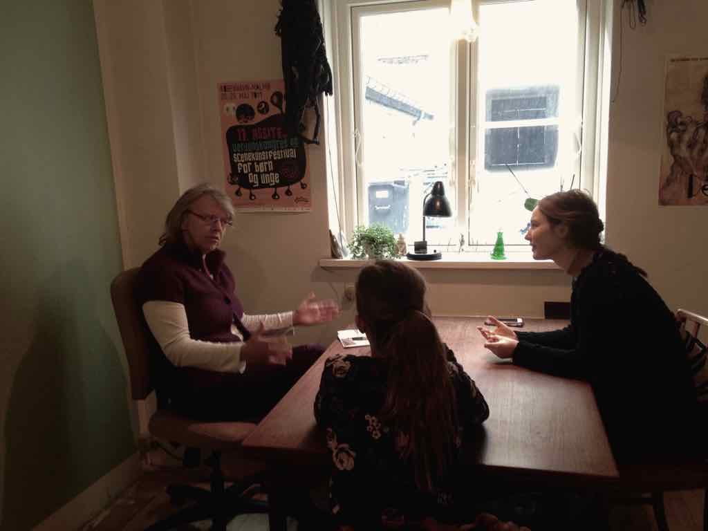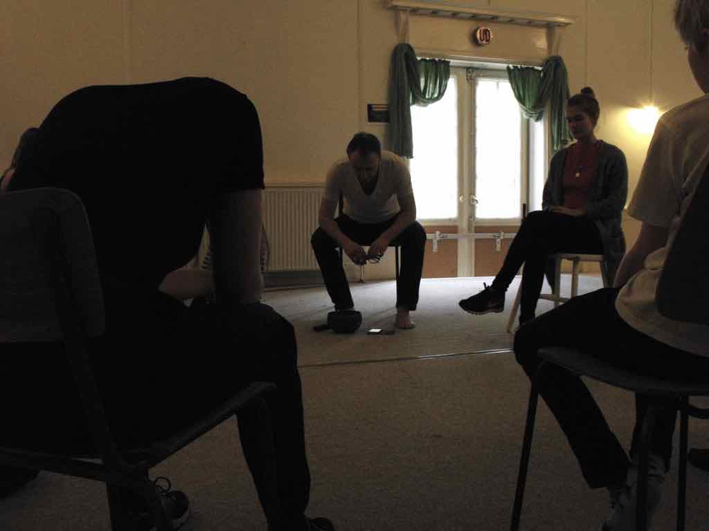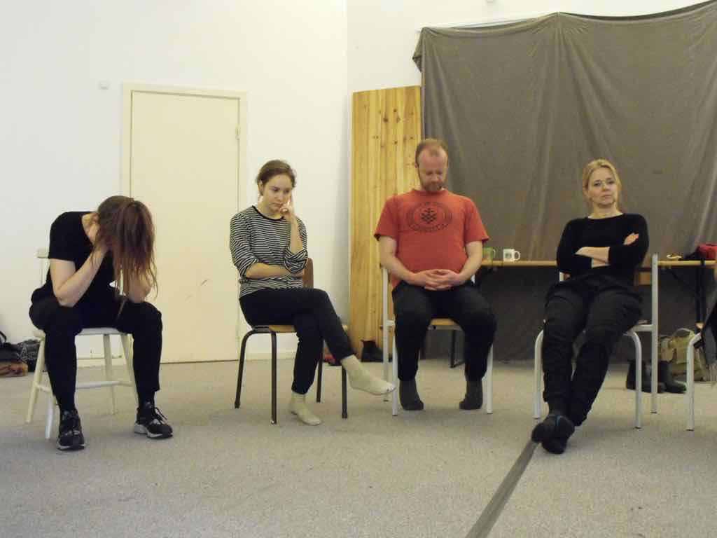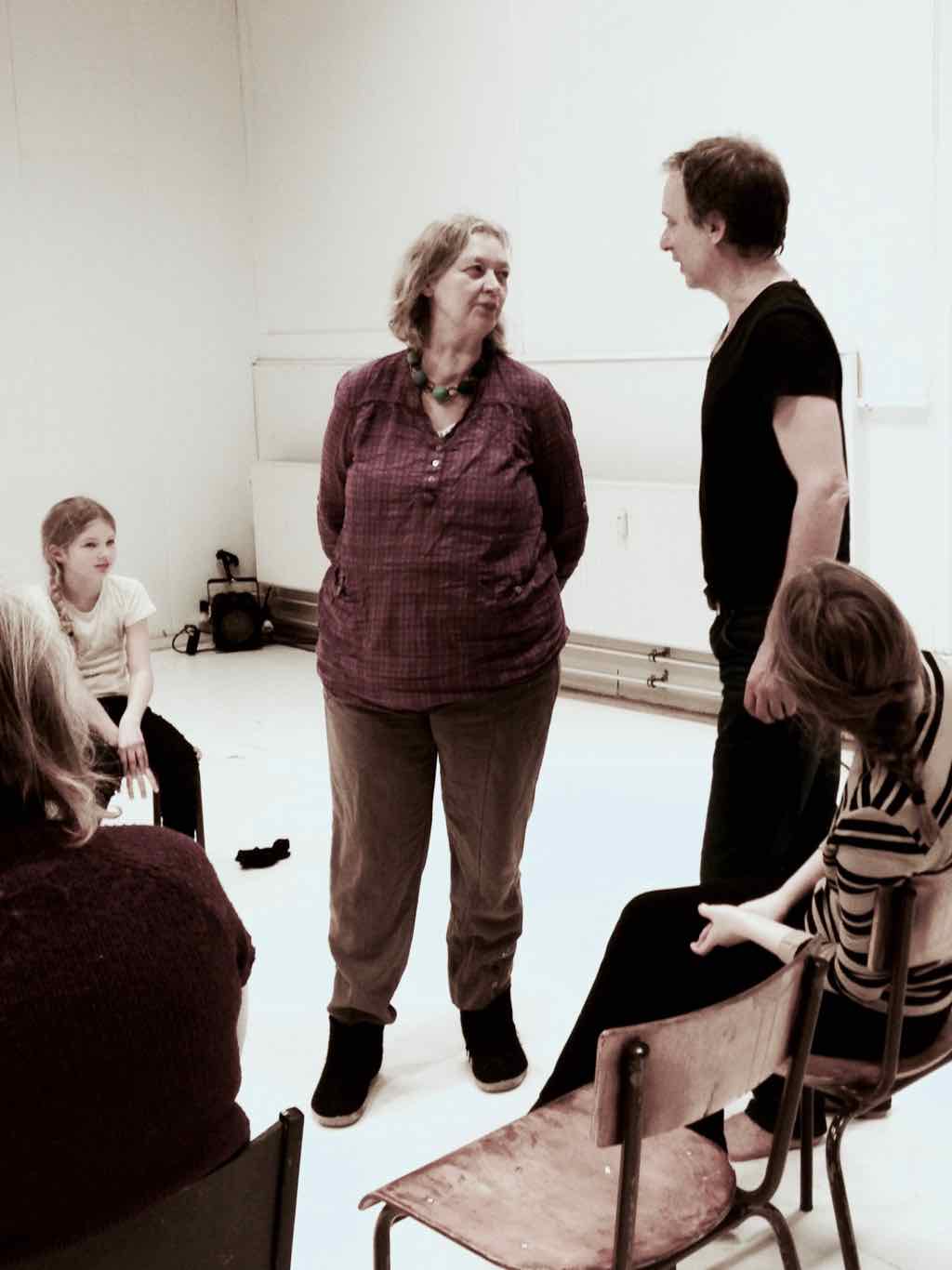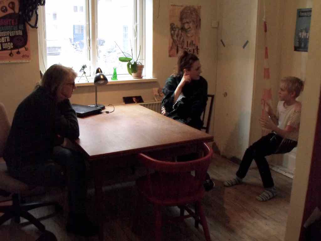 Der er visning i den store gruppe på de fire forskellige fortællinger, som har vidt forskellige udtryk. Processen har været legende, alvorlig og nydelsesfuld for alle deltagerne.