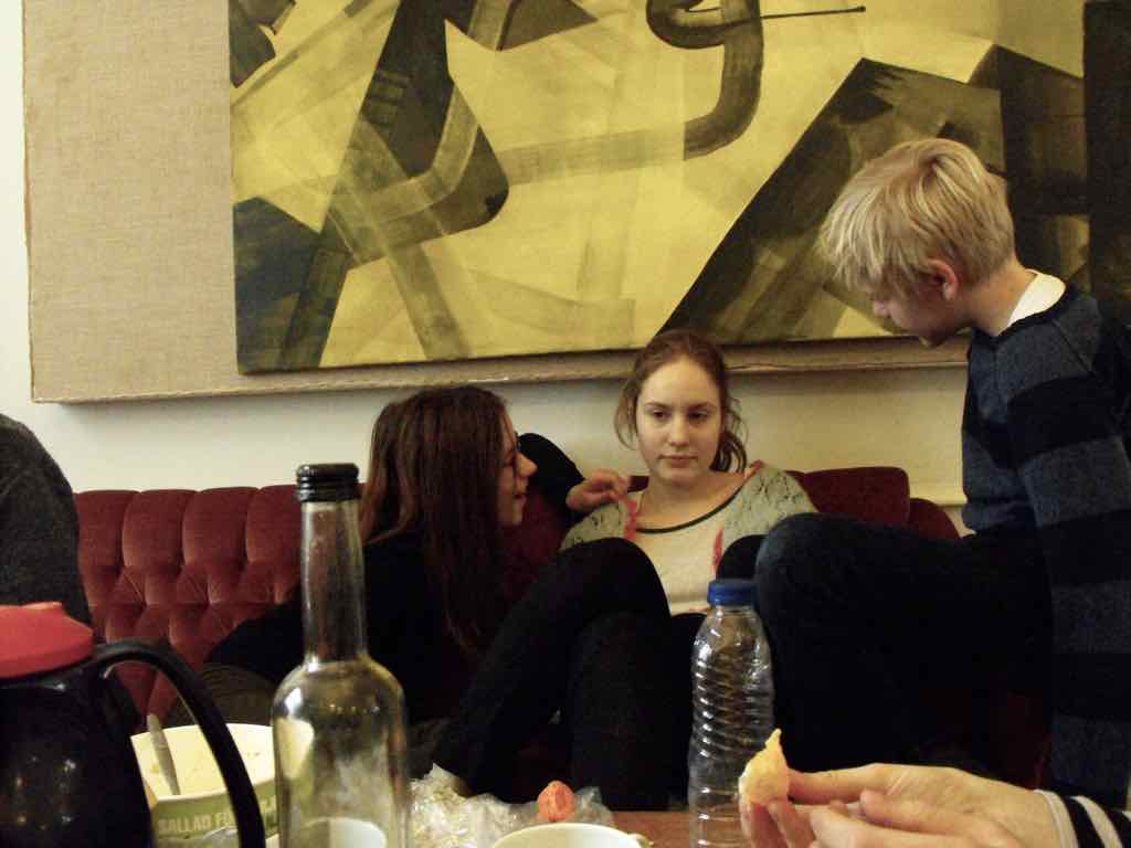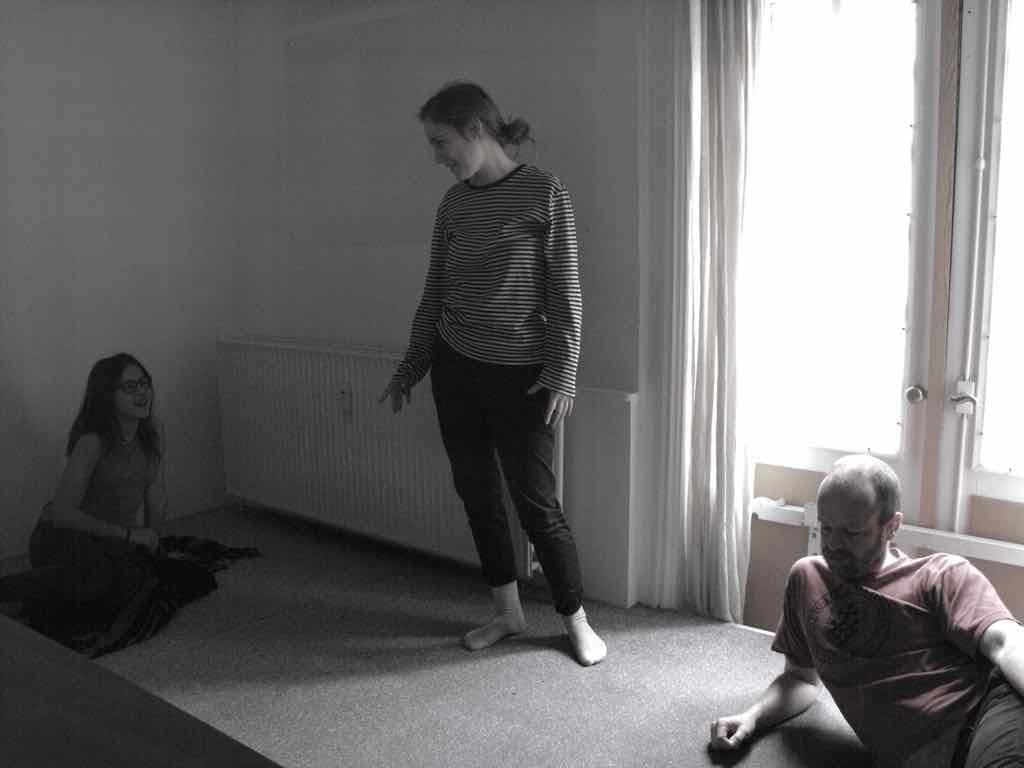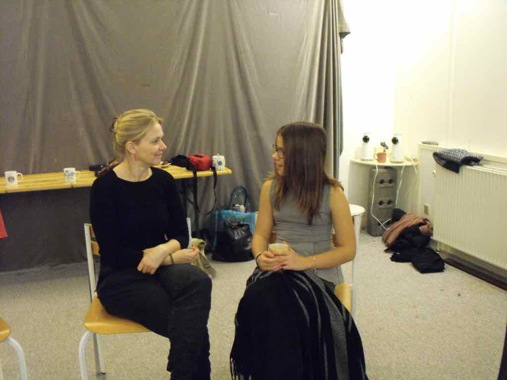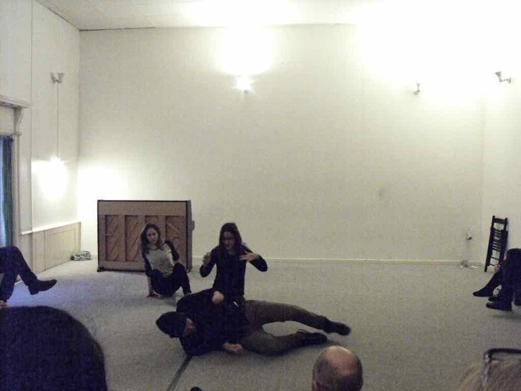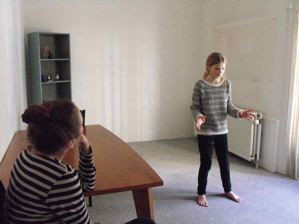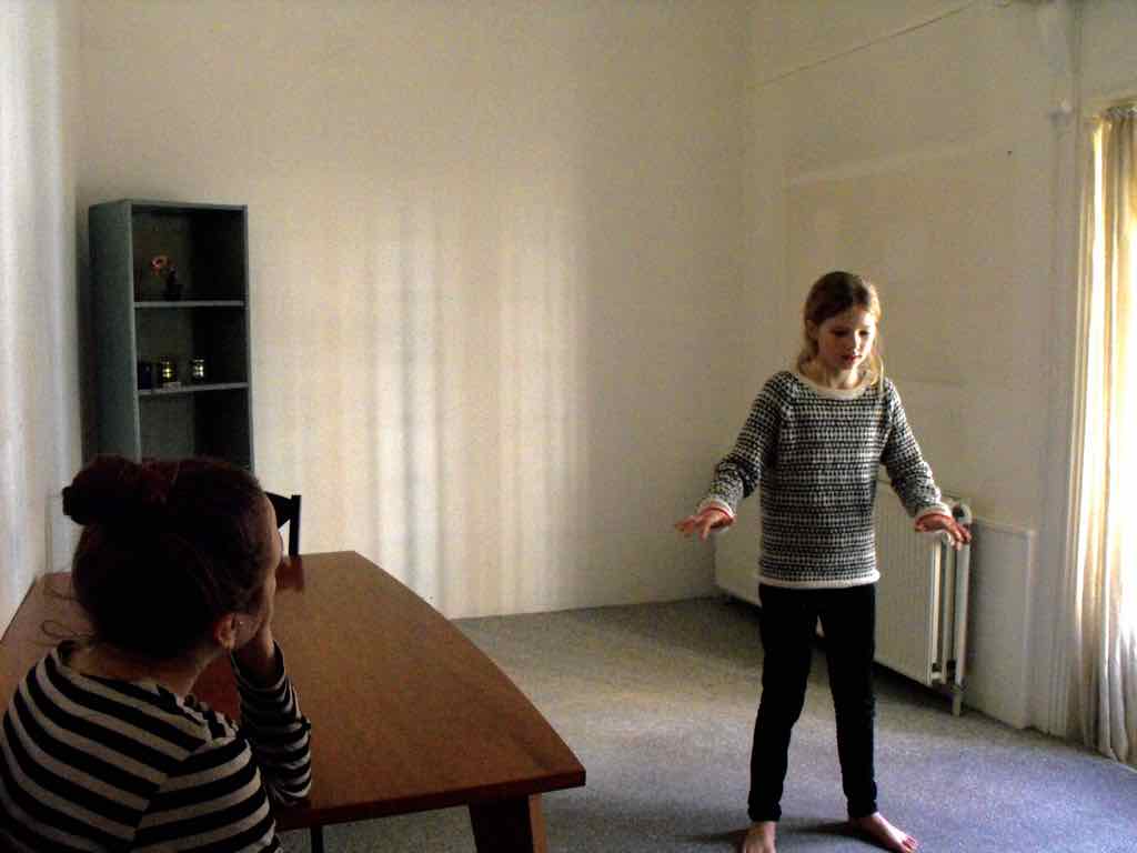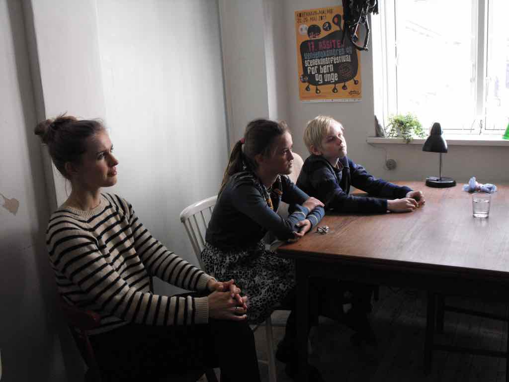 Der er visning i den store gruppe på de fire forskellige fortællinger, som har vidt forskellige udtryk. Processen har været legende, alvorlig og nydelsesfuld for alle deltagerne.