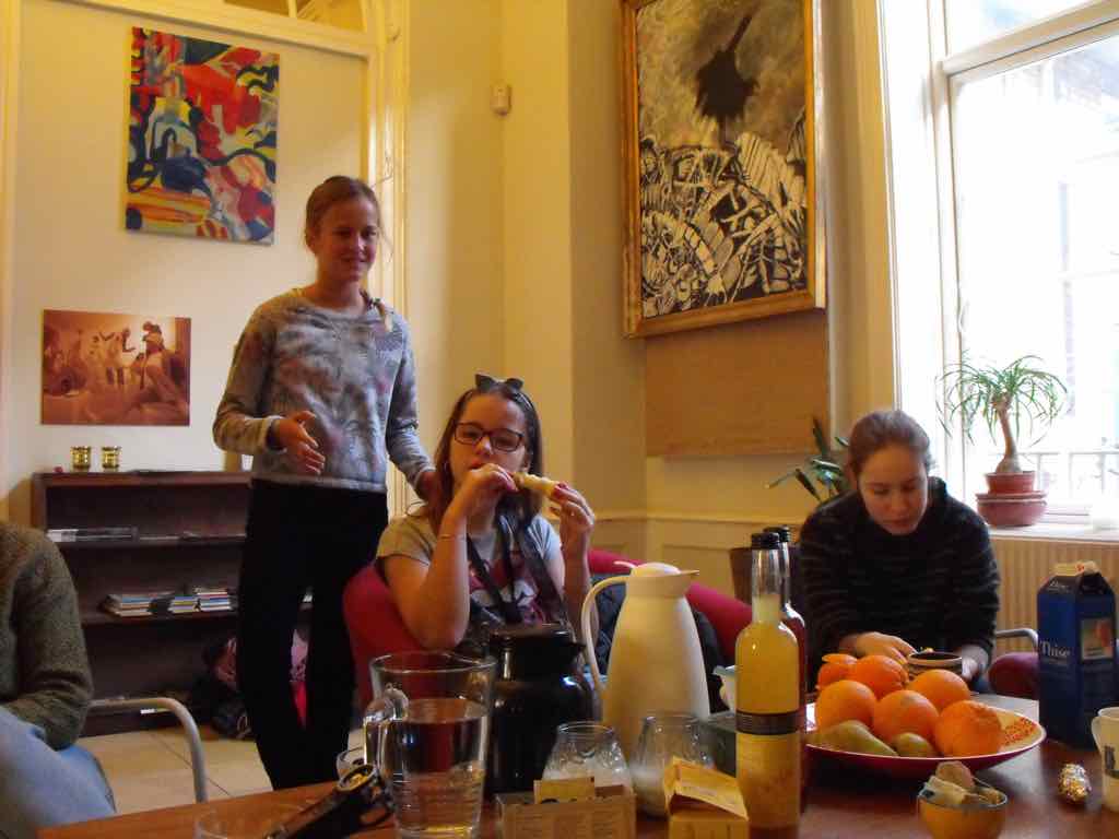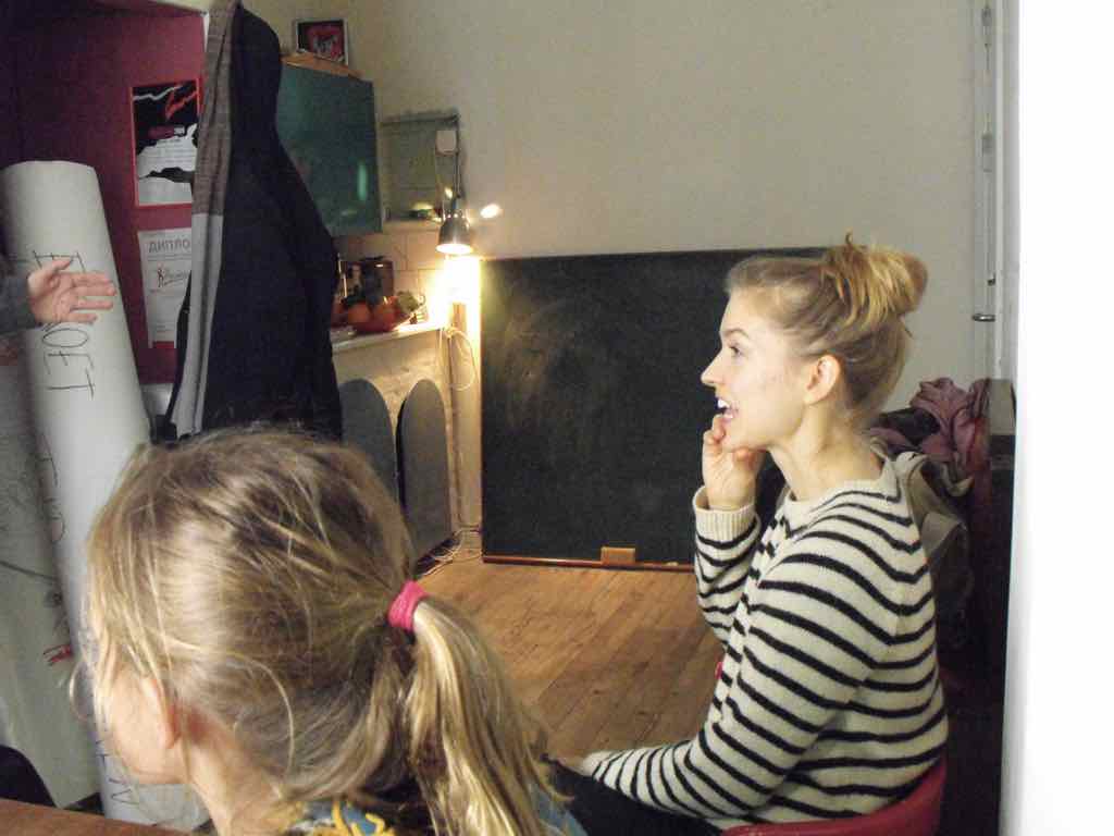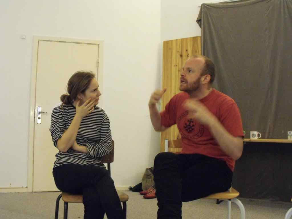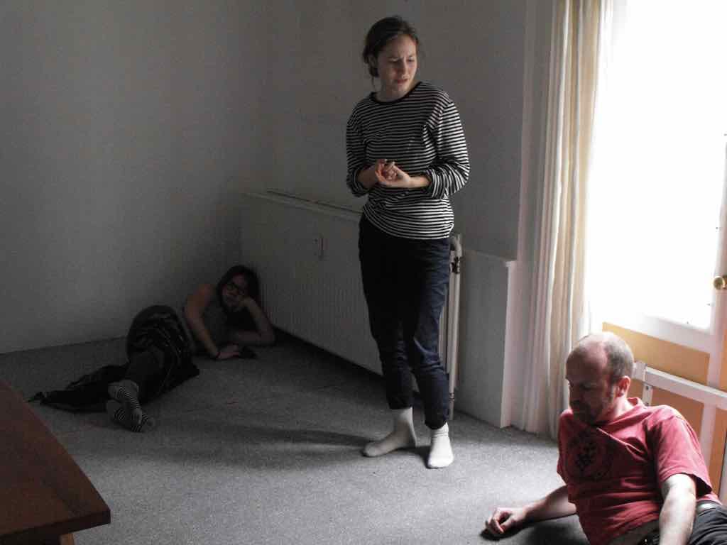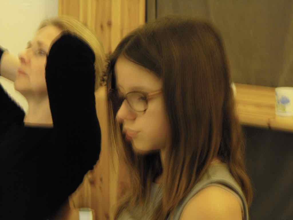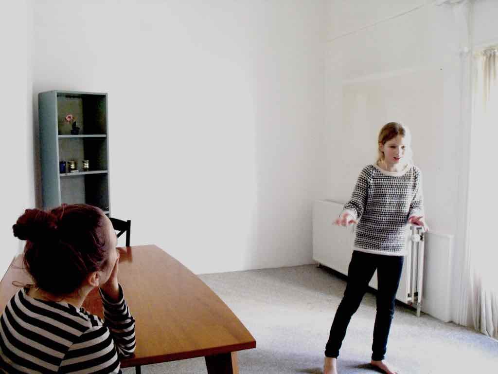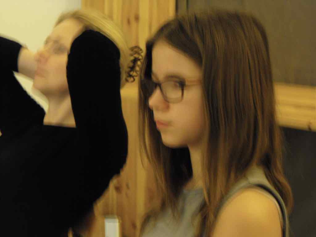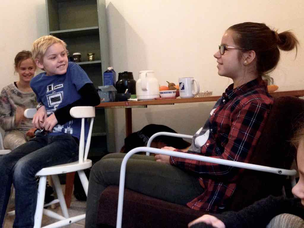 Der er visning i den store gruppe på de fire forskellige fortællinger, som har vidt forskellige udtryk. Processen har været legende, alvorlig og nydelsesfuld for alle deltagerne.