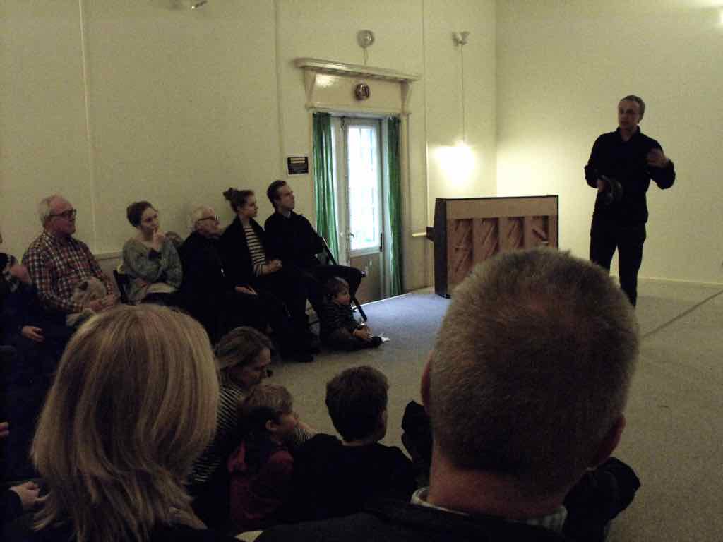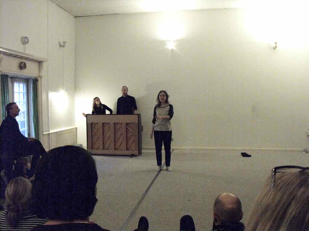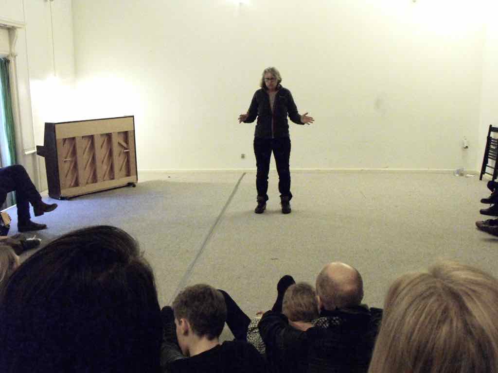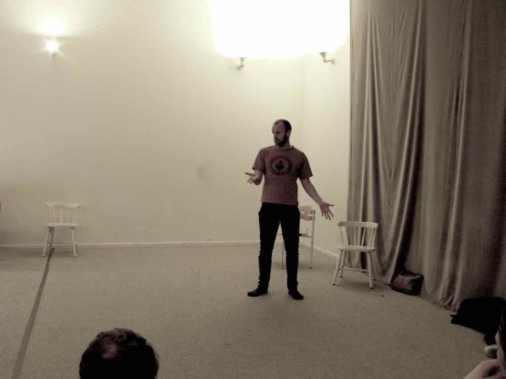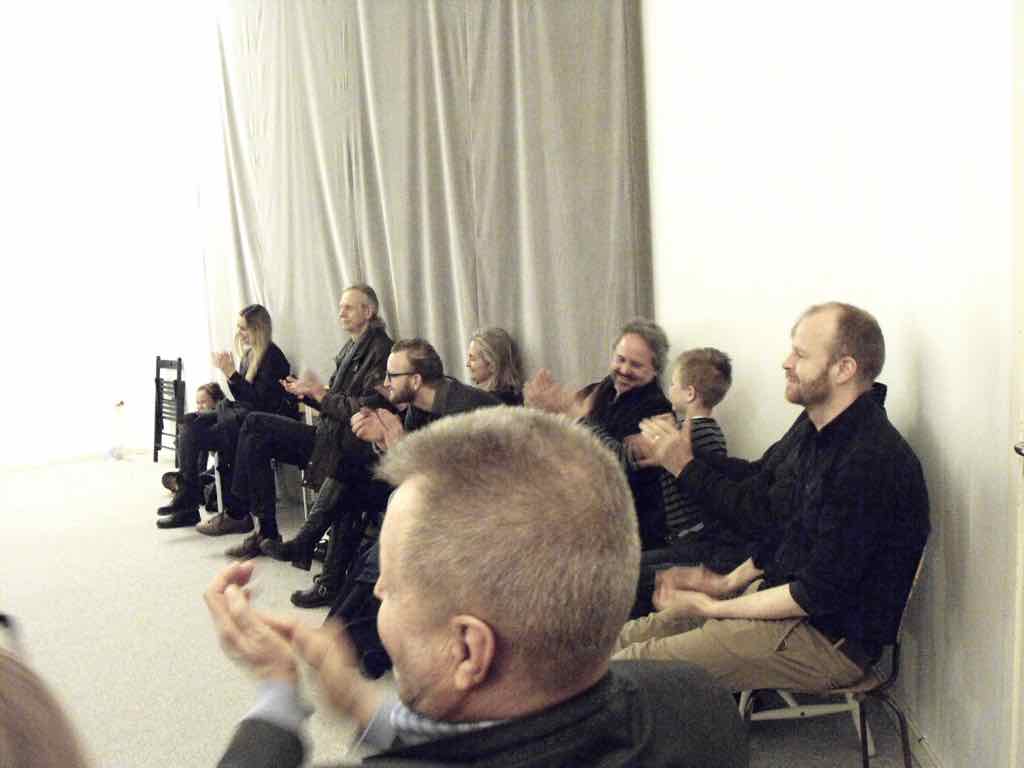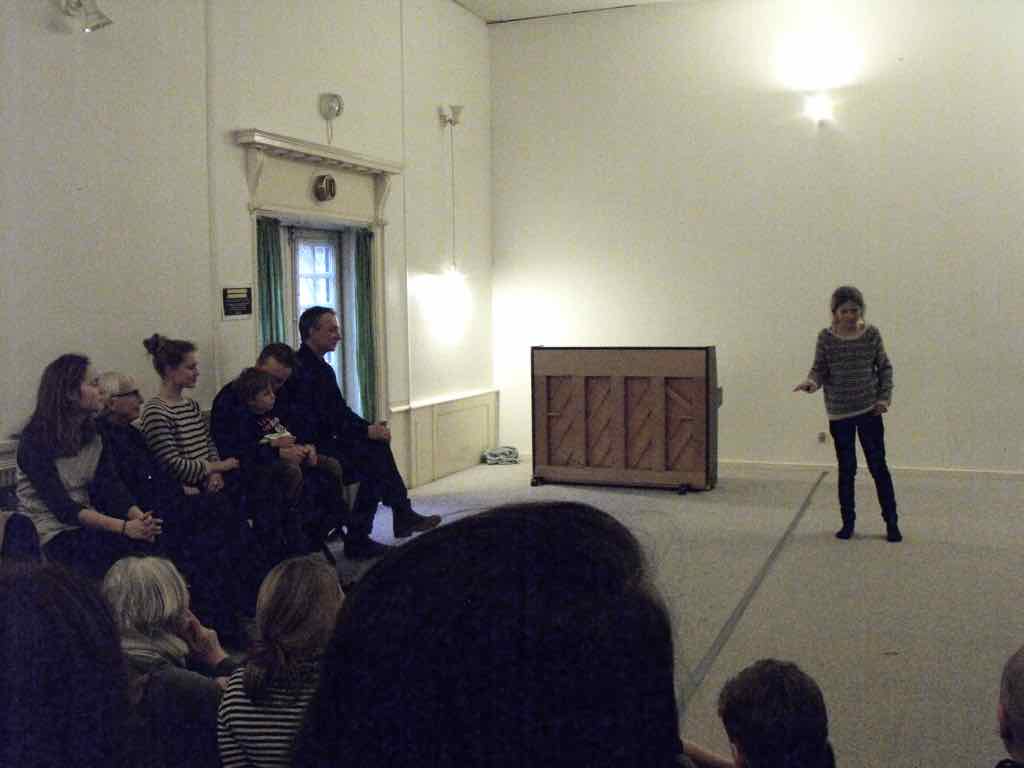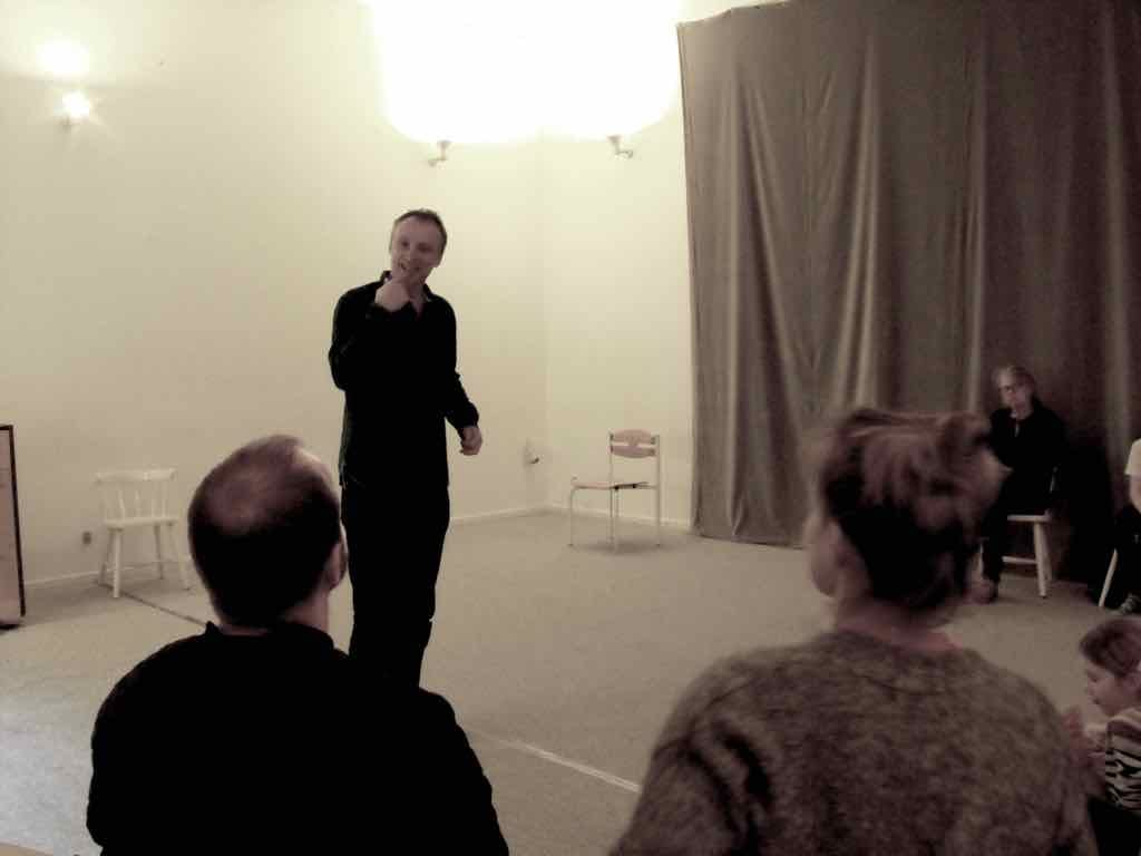 Om aftenen efter den sidste workshop holder Story Play en visning, hvor deltagerne og Jesper har inviteret gæster til at komme og opleve fortæl-lingerne og høre om Story Play.