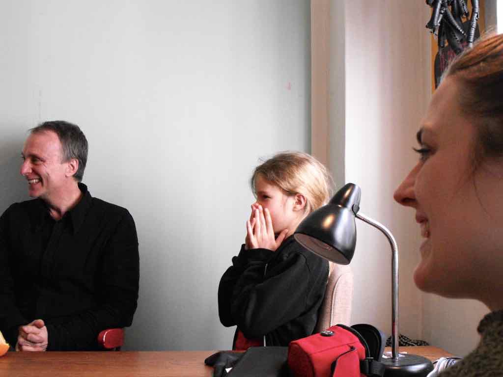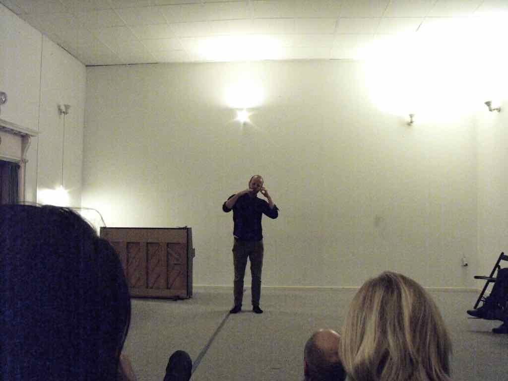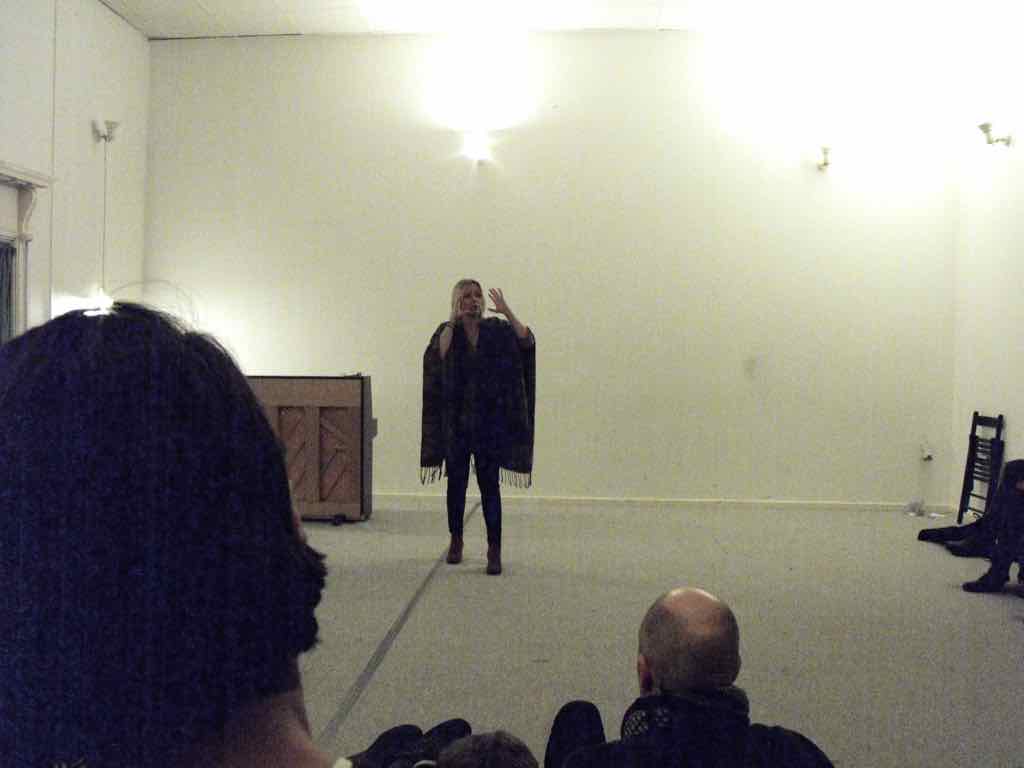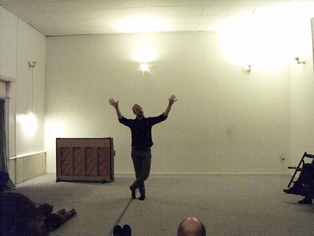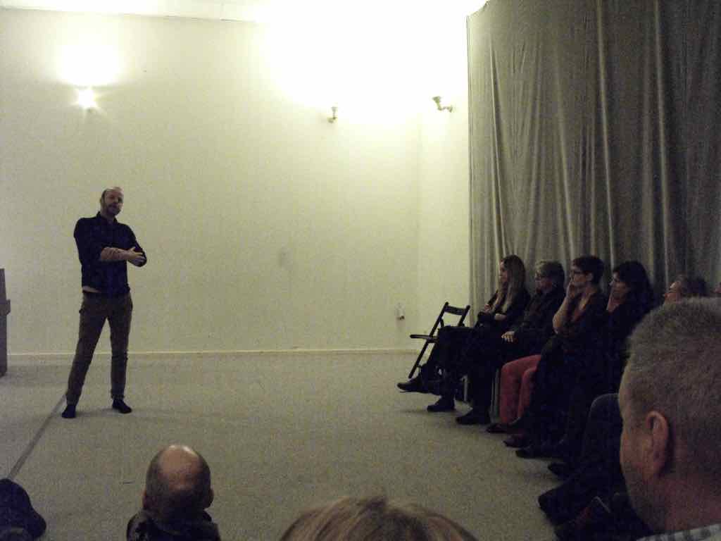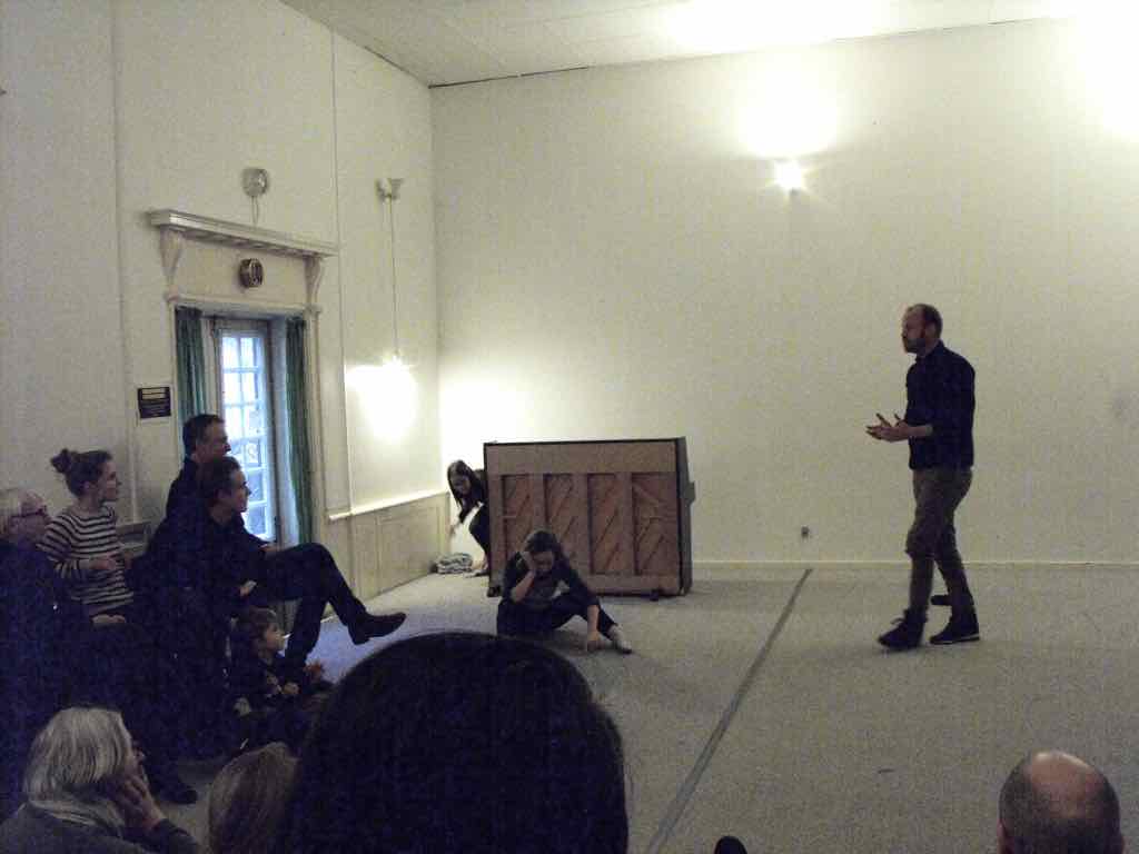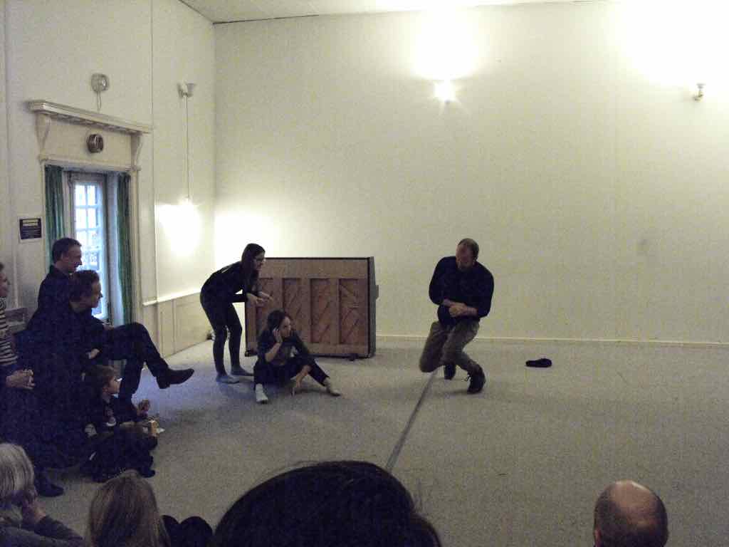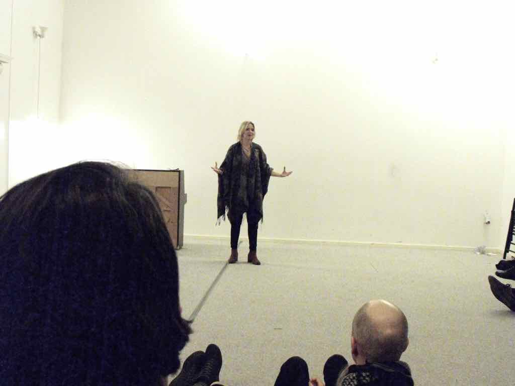 Om aftenen efter den sidste workshop holder Story Play en visning, hvor deltagerne og Jesper har inviteret gæster til at komme og opleve fortæl-lingerne og høre om Story Play.