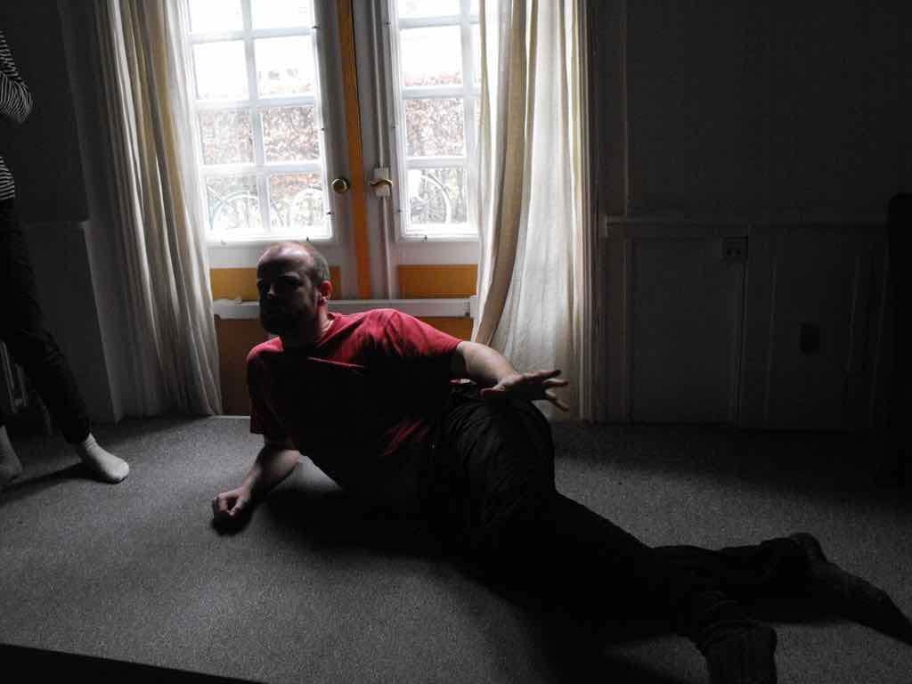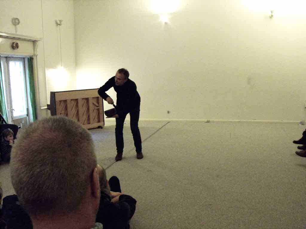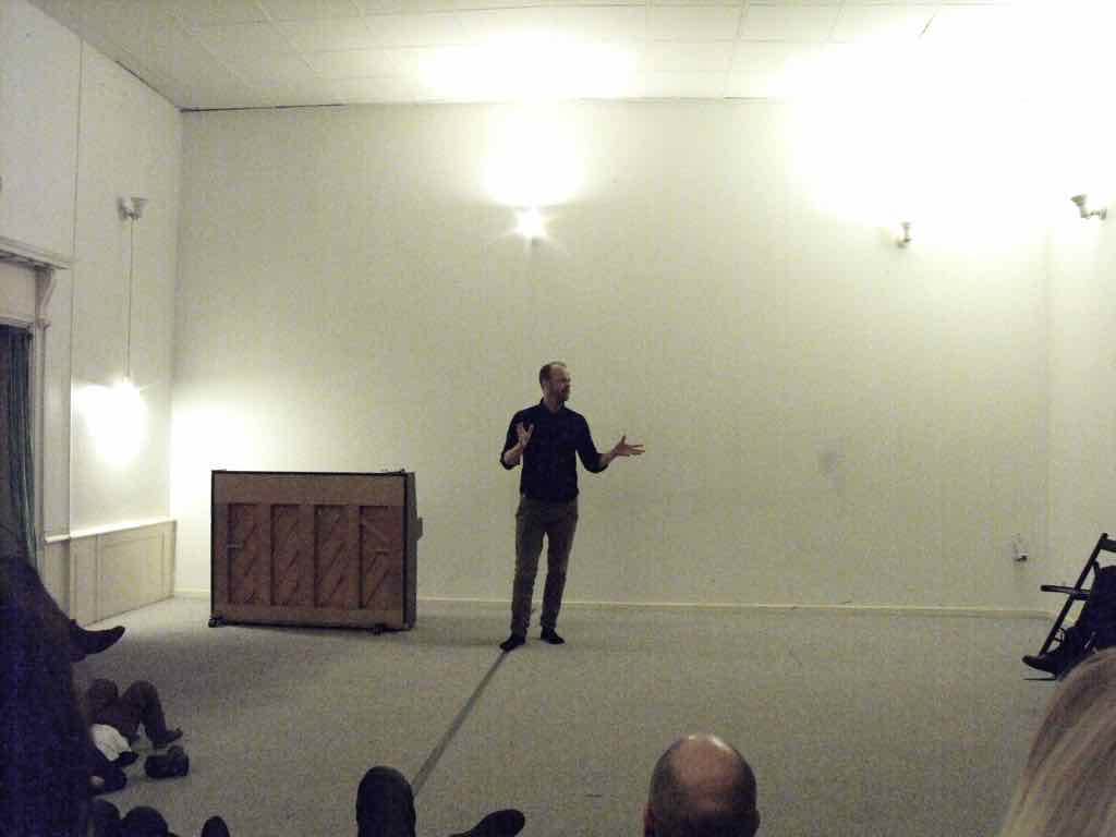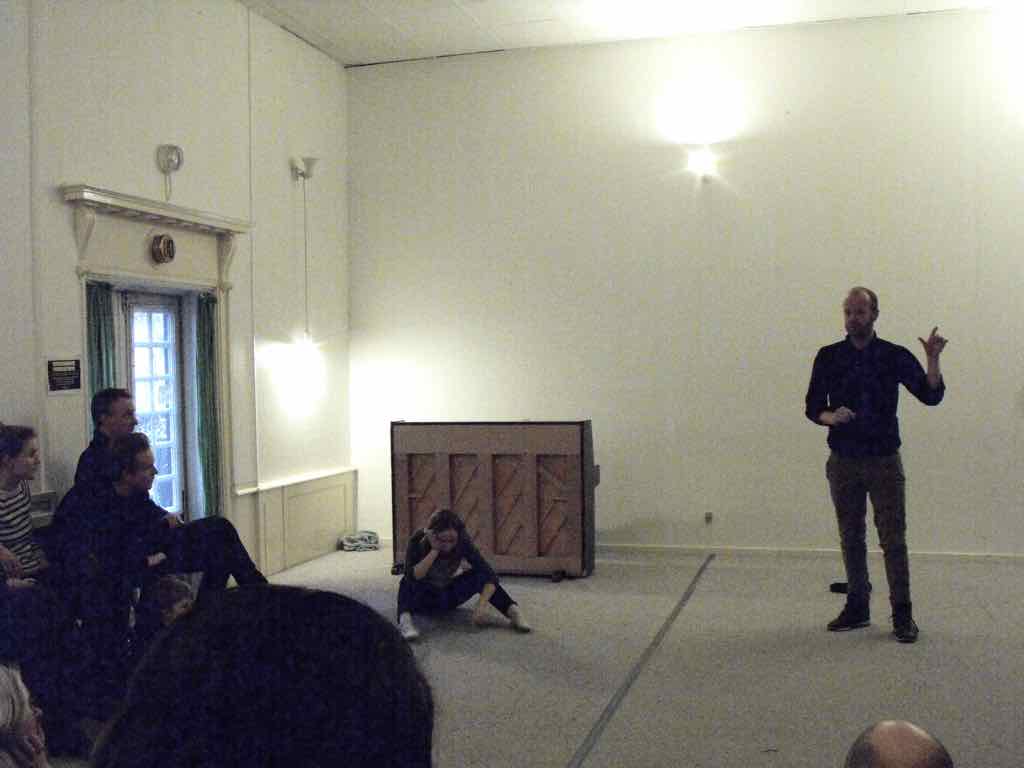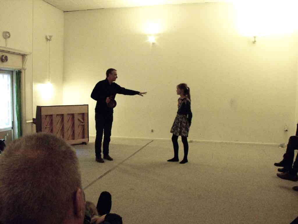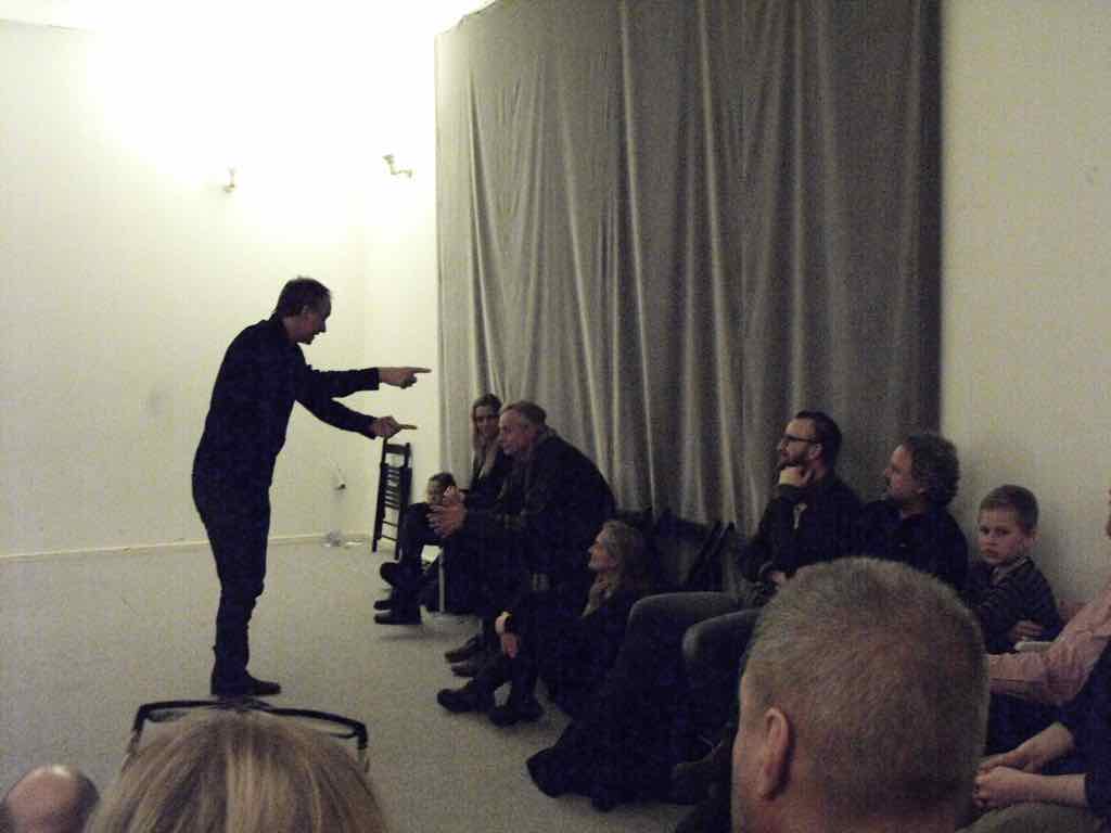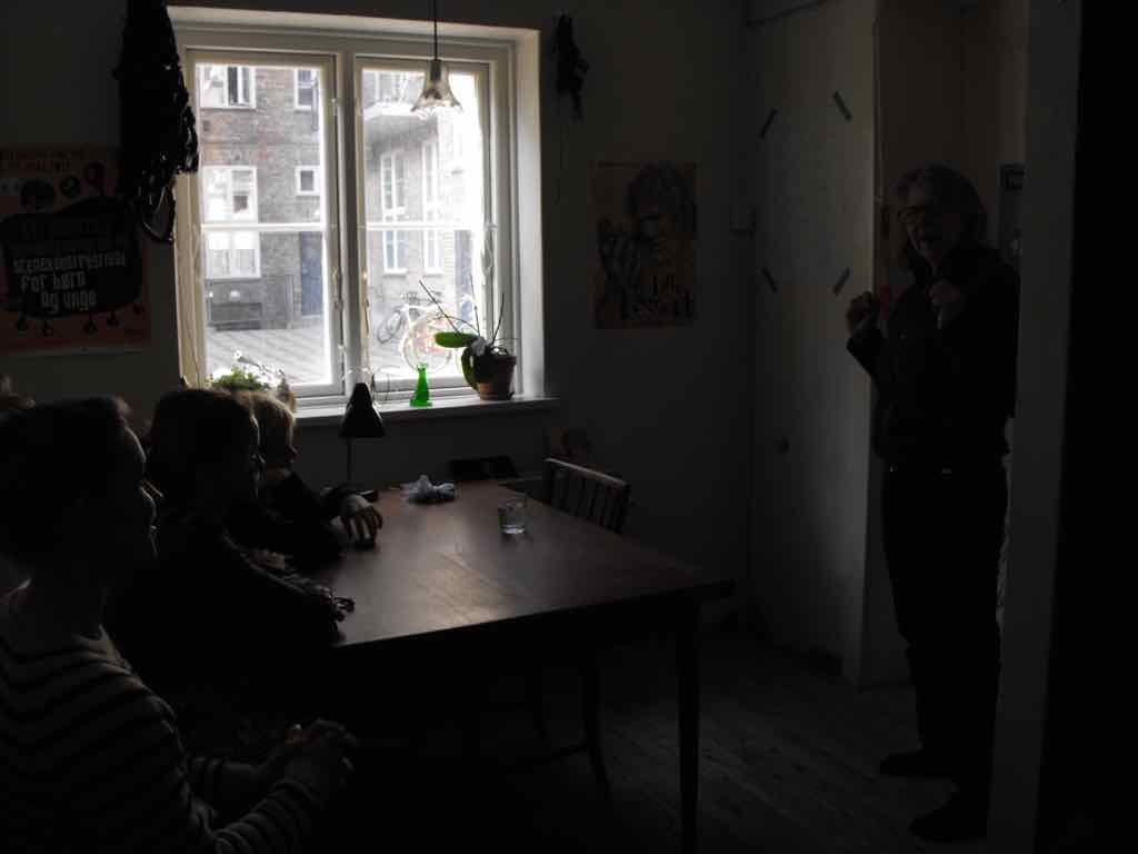Denne gang er det først Holger og her starter Jesper sin fortælling ude i gården og fører deltagerne gennem flere forskellige rum for at ende i et stearinoplyst rum. Jesper placerer undervejs sit publikum (deltagerne), hvor han vil have dem og skaber dermed den type rum og scene, han vil udfolde sin fortælling i. Det er en god illustration, der lægger godt op til en fælles refleksion omkring, det at skabe sit fortællerum.