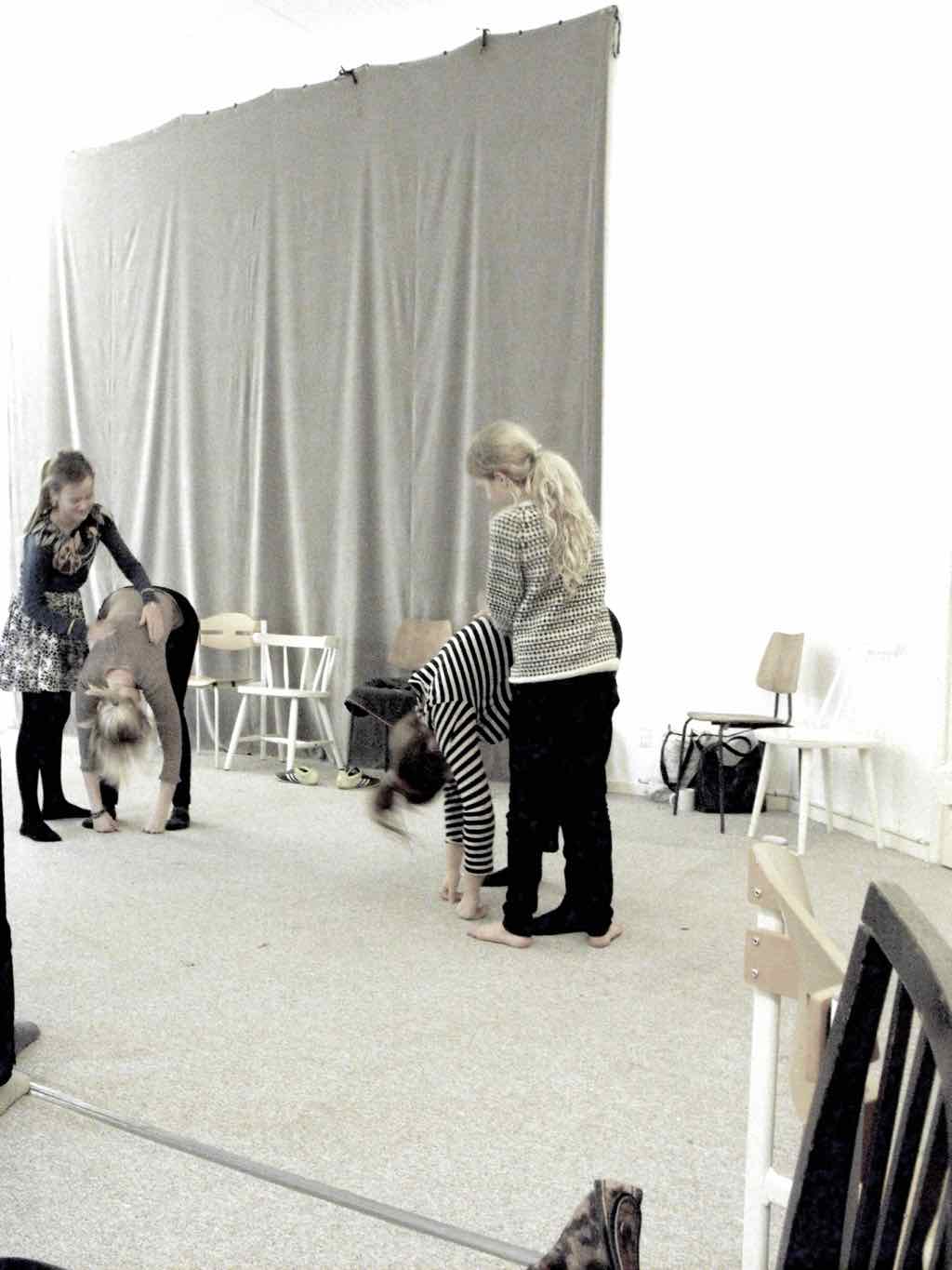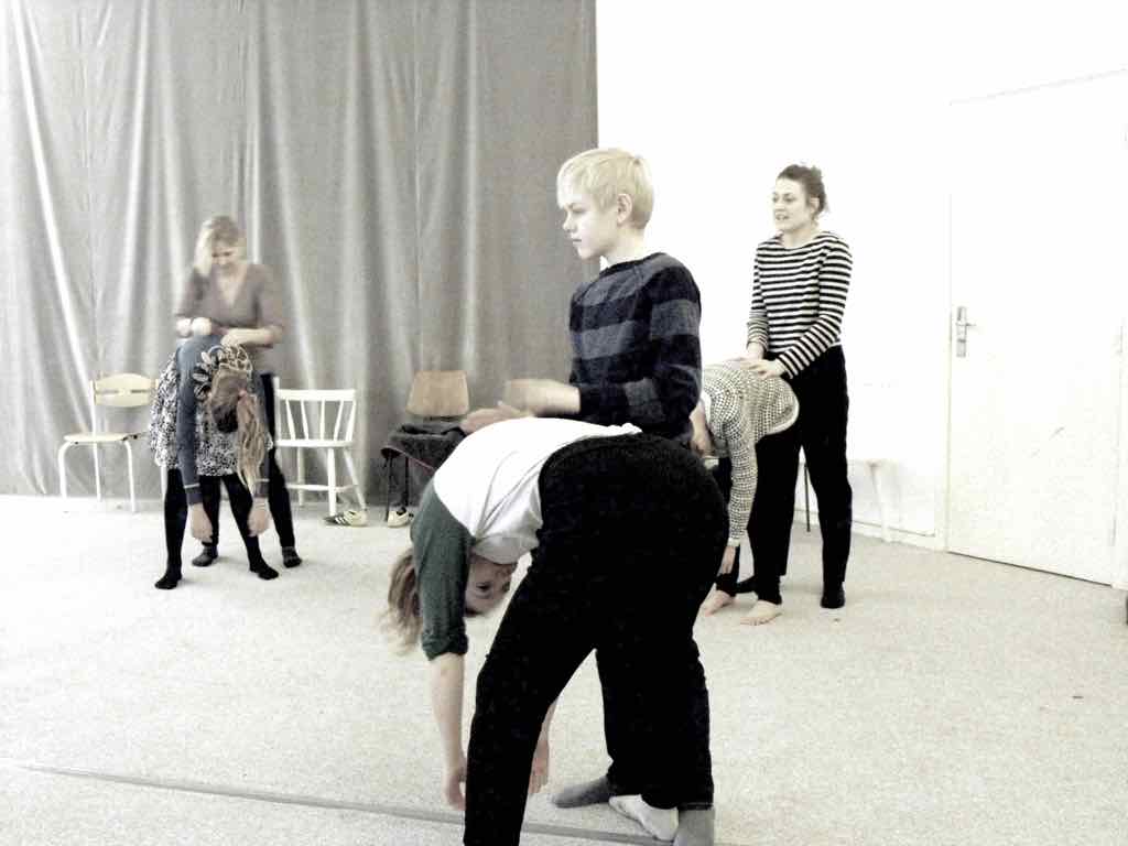øvelse/leg. De skal i grupper på fire i lodret tidsakse skabe en fortælling ud