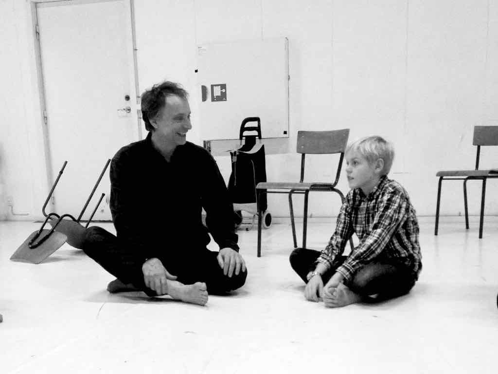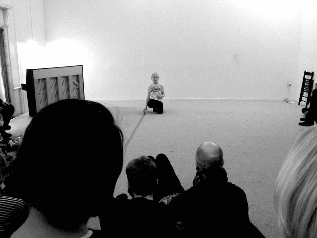 dyd ud af nødvendigheden og bruger fraværet af sin sædvanlige partner i forestillingen til at vise, hvordan man kan inddrage sit publikum i fortæl-lingen. Han beder jævnligt publikum om at agere den ene eller anden figur eller lave en lyd eller bare give sit besyv med. Dette er igen et glimrende oplæg til fælles refleksion over muligheder for publikums-inddragelse og betydningen af at blive inddraget som publikum.